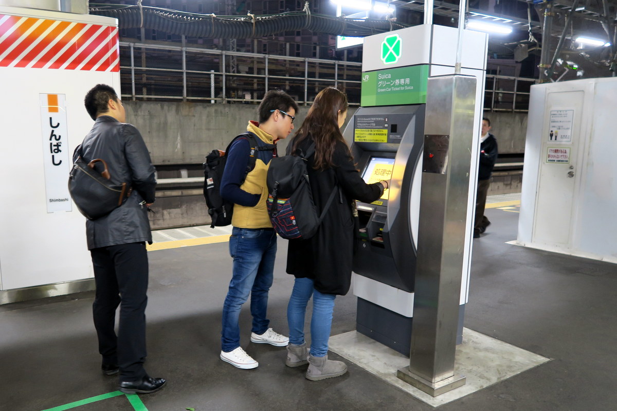 На перронах стоят вот такие автоматы, которые позволяют держателям нормальных билетов доплатить за Green Car.