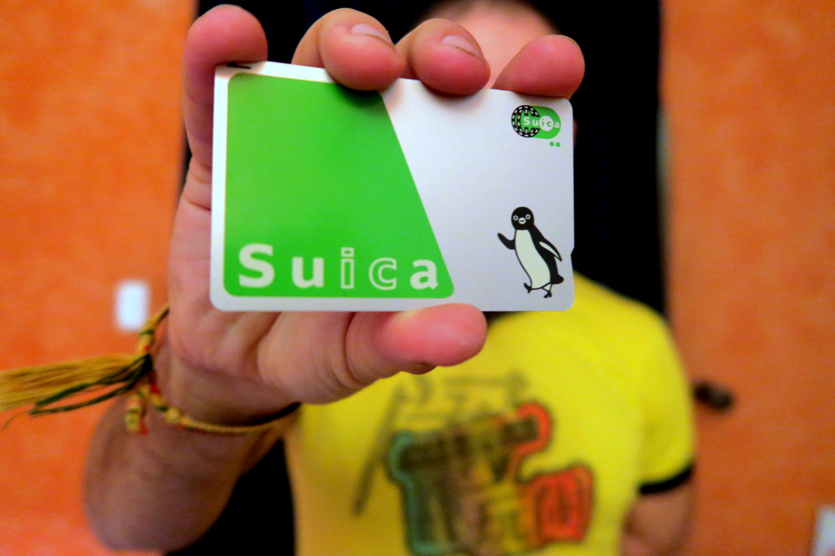 Ирония в том, что Суйку не надо никуда сувать - она бесконтактная. Её можно приобрести в автоматах на больших станциях, за 500-иенный депозит, который потом могут вернуть в любой железнодорожной кассе. Пополнять её можно в автоматах, за наличные. Я в этой поездке впервые воспользовался Суйкой, и это очень сильно облегчило жизнь - рекоммендую. Правда, по понятным причинам, каждому пассажиру нужна будет своя.