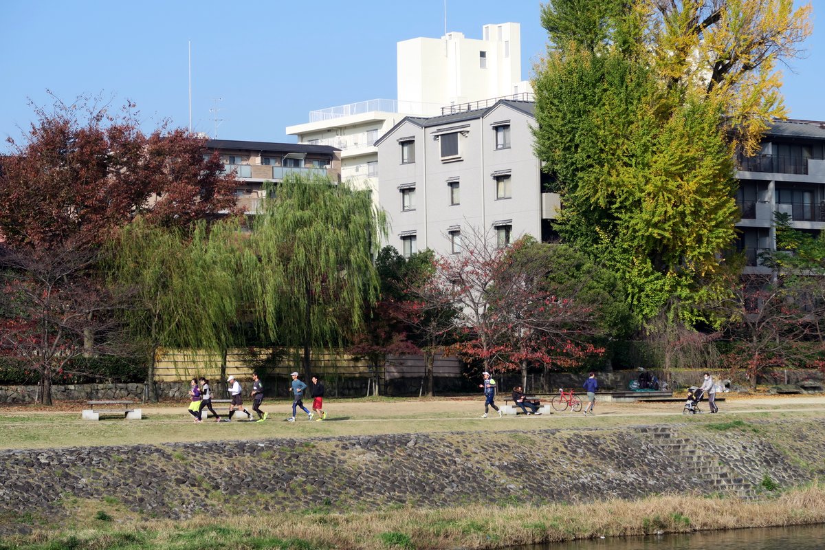 Киотцы (Киотяне?) любят свою реку. В хорошую погоду многие приходят посидеть на её берегах. Некоторые приносят пикник, другие пьют кофе, или чего покрепче. Но и без ничего тоже приходят. Пообщаться, или просто повтыкать на город на другой стороне.