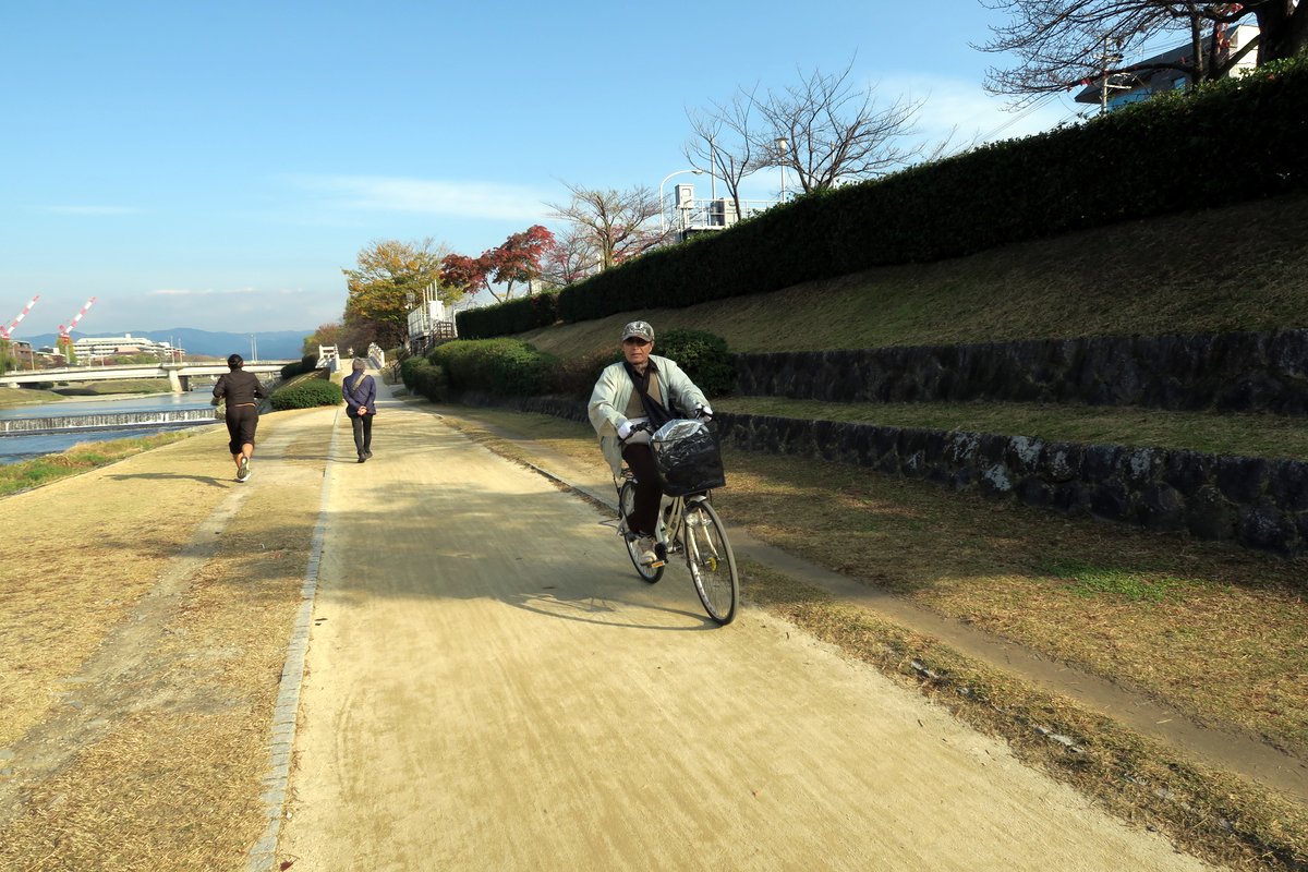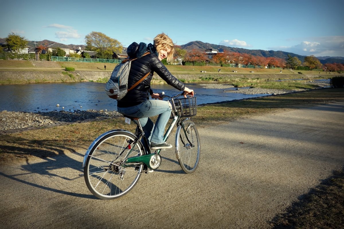Должен сказать, что на велосипеде, вдоль реки - лучший способ для туриста передвигаться по Киото. Так можно проехать большую часть пути до любой достопримечательности в центре. Велопрокаты в Киото встречаются часто, аренда велосипеда на день не должна превышать $10. Хотите посмотреть как можно больше храмов за короткое время? Вам нужен велосипед, а набережная - лучшая в городе велодорожка! (Спасибо Саша за эту идею!)