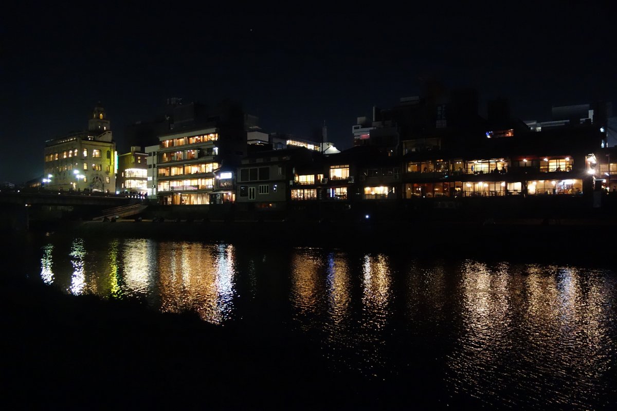 Ночью Камо-гава тоже красива. Здесь продолжает быть людно, когда все другие пятачки города уже опустели.