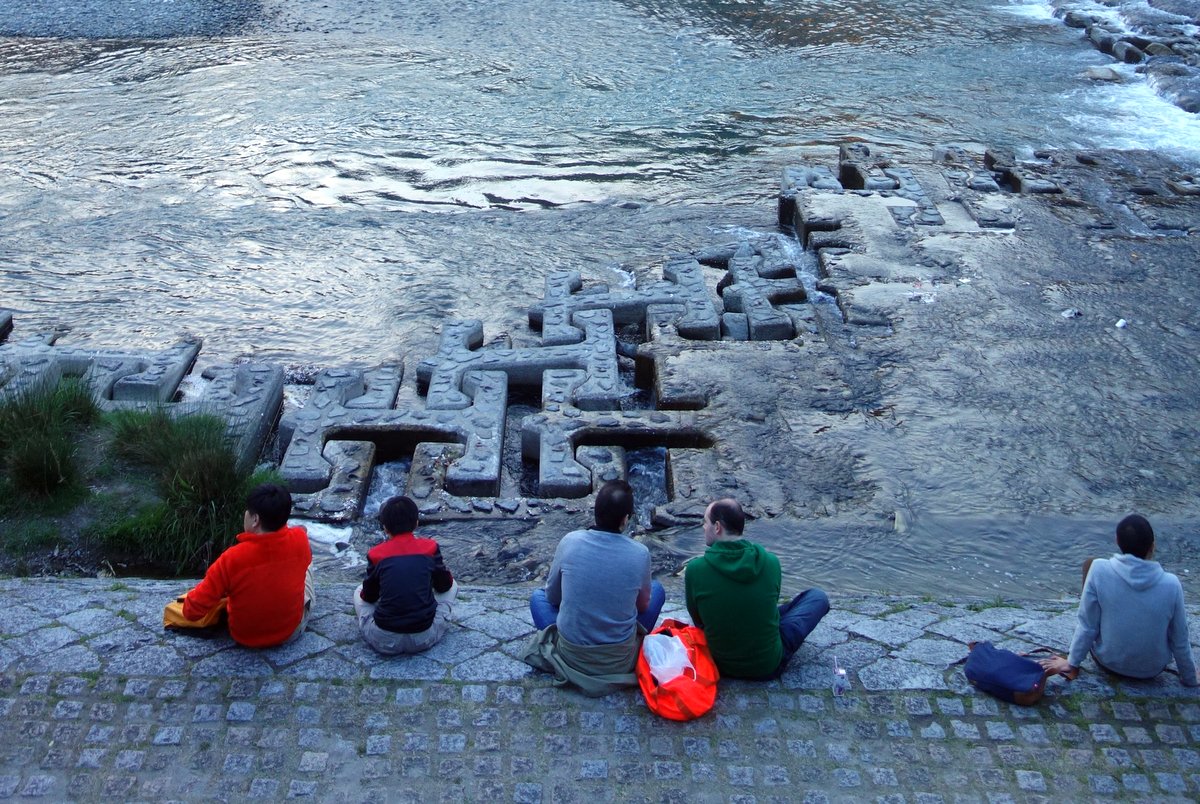 А что это за булыжники по бокам от стрелки? Это своеобразные прыгучие броды. Велосипеды и автомобили тут не переправятся, а вот пешеходы в хорошей физической форме - запросто! Эти штуки сделаны из цементной смеси, и не мешают течению реки.
