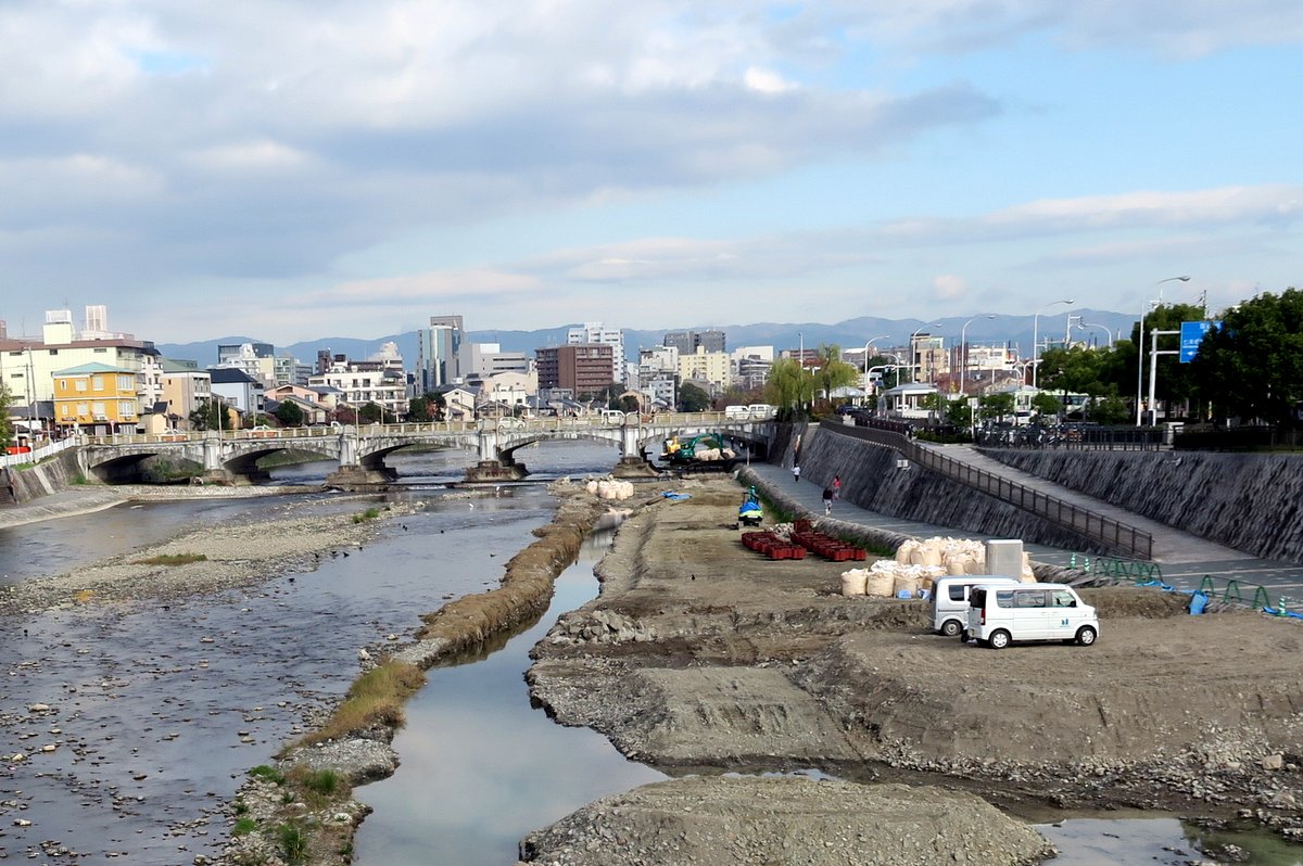 Долгое время по восточному берегу Камо ходила железная дорога Keihan. Но в 1980-х годах её закопали под землю, чтоб не портила вид, а жители города получили в своё распоряжение прекрасную набережную.