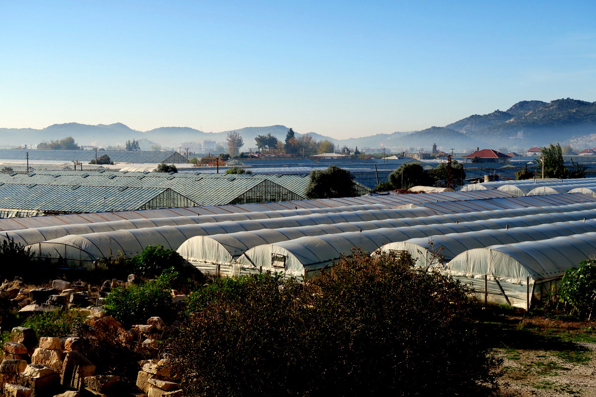 Прямо за развалинами старого города начиналось бескрайнее поле парников и теплиц. Их серые крыши уходили в даль, и напоминали поверхность моря во время шторма. Нам с Тоней стало любопытно, что тут выращивают.
