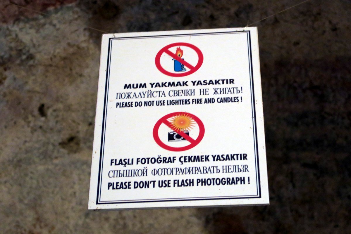 Здесь остались надписи со времён когда русских туристов было побольше. В церкви не только не стоит "ЖИГАТЬ СВЕЧКИ", но и "НЕЛЬЗR ФОТОГРАФИРОВАТЬ СПЫШКОЙ". Хотя я не знаю чего я прикалываюсь над старательными турками. У меня в этом посте небось намного больше ошибок закралось.