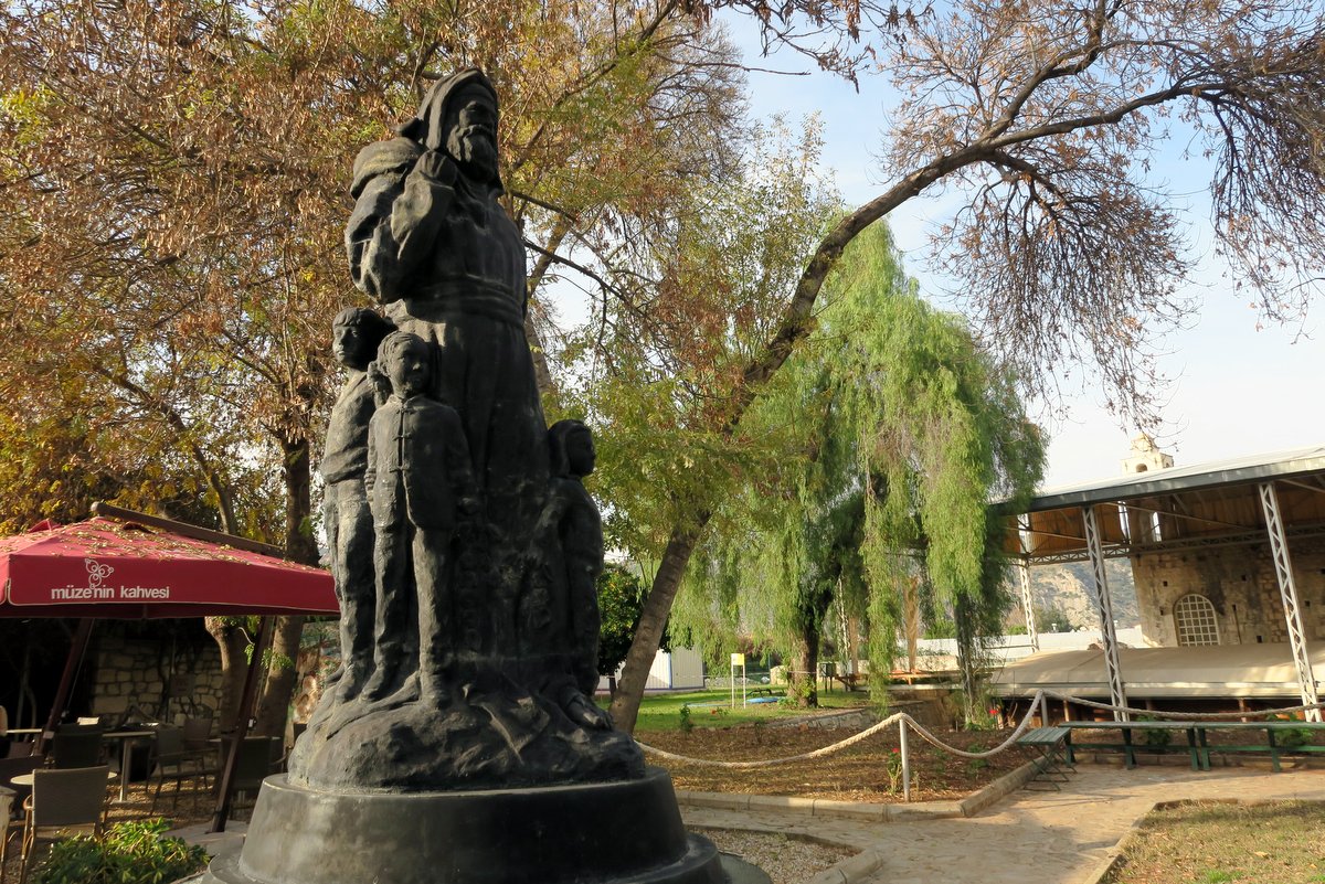 В районе Миры стоит много памятников святому Николаю - в основном в окружении детей. Многие из них довольно новые. Например вот этот был установлен в конце ХХ века: