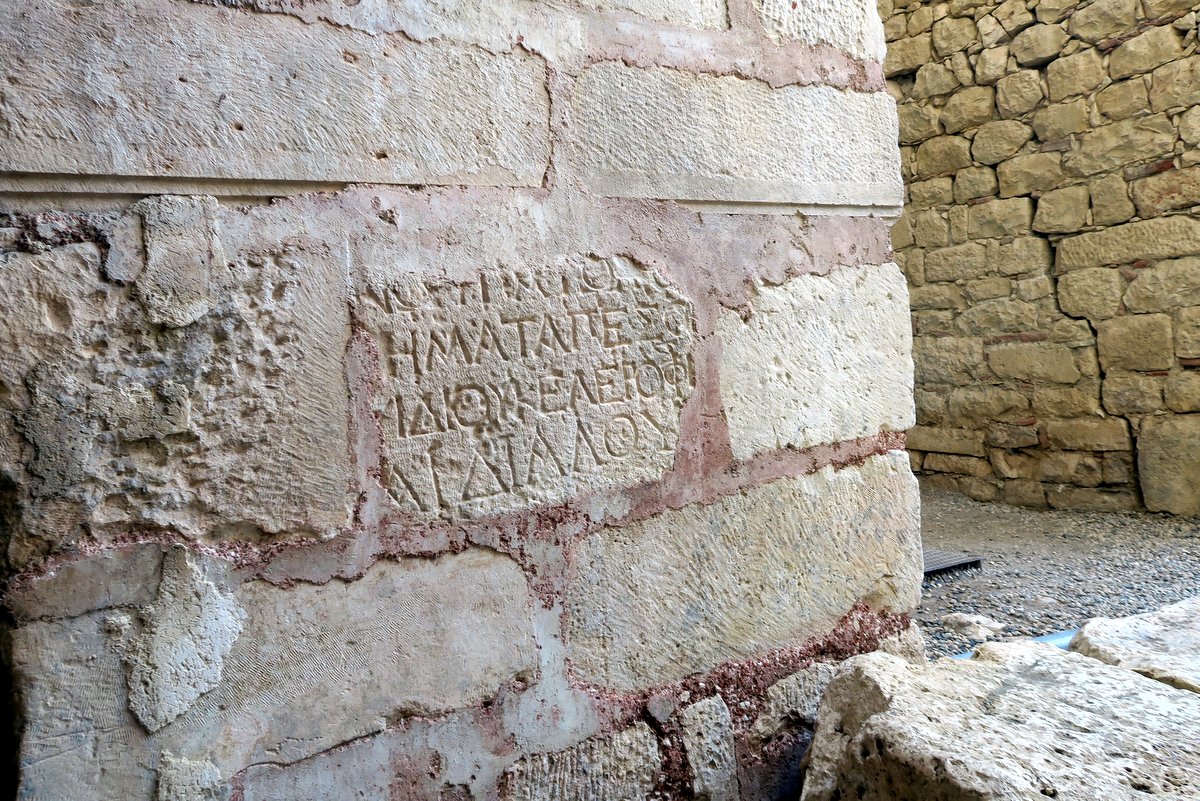 Церковь явно реставрируют. Надпись тут может и древнегреческая, а вот цемент точно из нашего времени.
