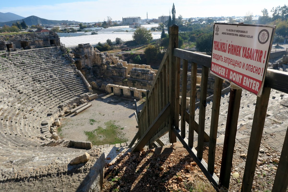 После завоевания города римлянами, амфитеатр Миры был адаптирован для проведения гладиаторских боёв. Входить сюда не только до сих пор запрещено, но ещё и опасно!