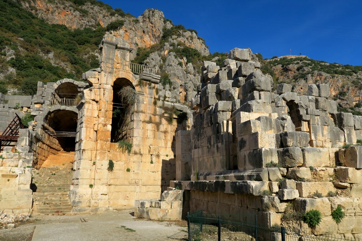 Ладно, вернёмся к Мире (древние греки называли город "Μύρα"). Город был частью Ликийского Союза, конфедерации городов на берегу Средиземного моря. У ликийцев была своя культура, язык и обычаи. Но начиная с IV века до нашей эры их постоянно завоевывали. Сначала греки, при Александре Македонском; потом римляне, при Императоре Клавдие; а затем - турки. Мира - один из главных городов Ликии, и даже был их столицей на протяжении скольких-то лет. Руины античного города хорошо сохранились в сухом средиземноморском климате.