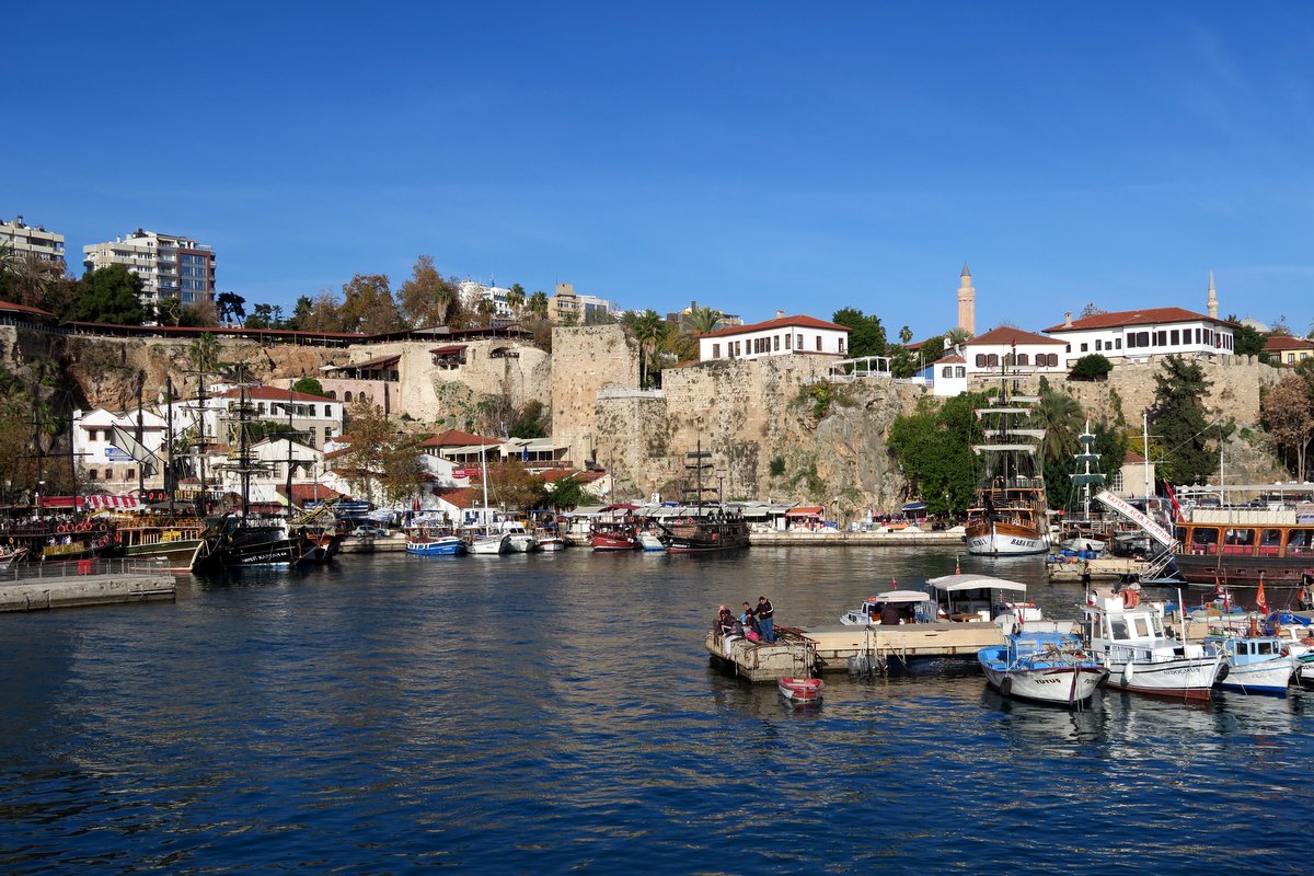 Старый порт Анталии. Здесь куча прогулочных яхт стоят без дела. Они привыкли возить туристов вдоль красивого скалистого побережья, показывать водопады и гроты, играя попсу 90х из дребезжащих колонок на палубе. Но теперь русских нет, и нанимать их некому.