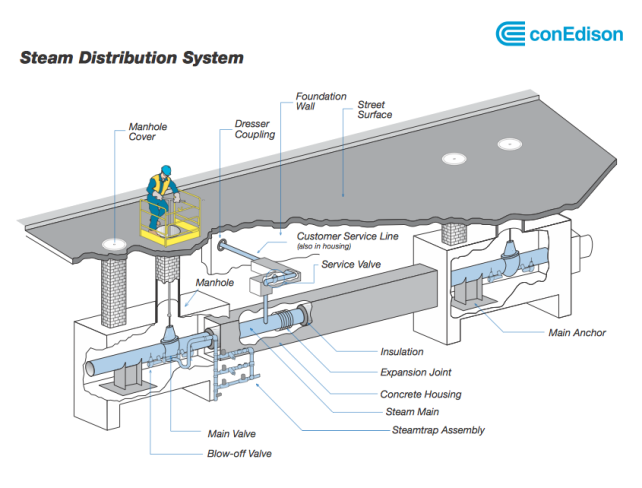 В прошлом посте я загадал загадку: Для чего такие бело-оранжевые трубы по всему Манхэттену стоят, пуская густые клубы пара? Многие из моих читателей правильно написали, что этот пар идёт из довольно уникальной системы отопления.
