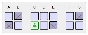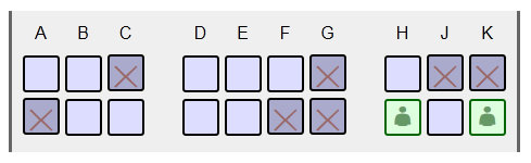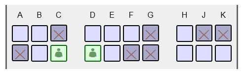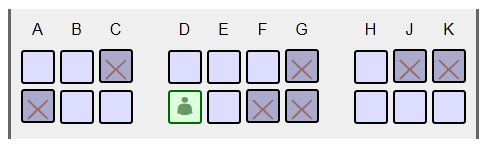 Опять избегаю аппетитного кресла C в абсолютно пустой тройке, и беру D, где есть хороший шанс остаться без соседа.