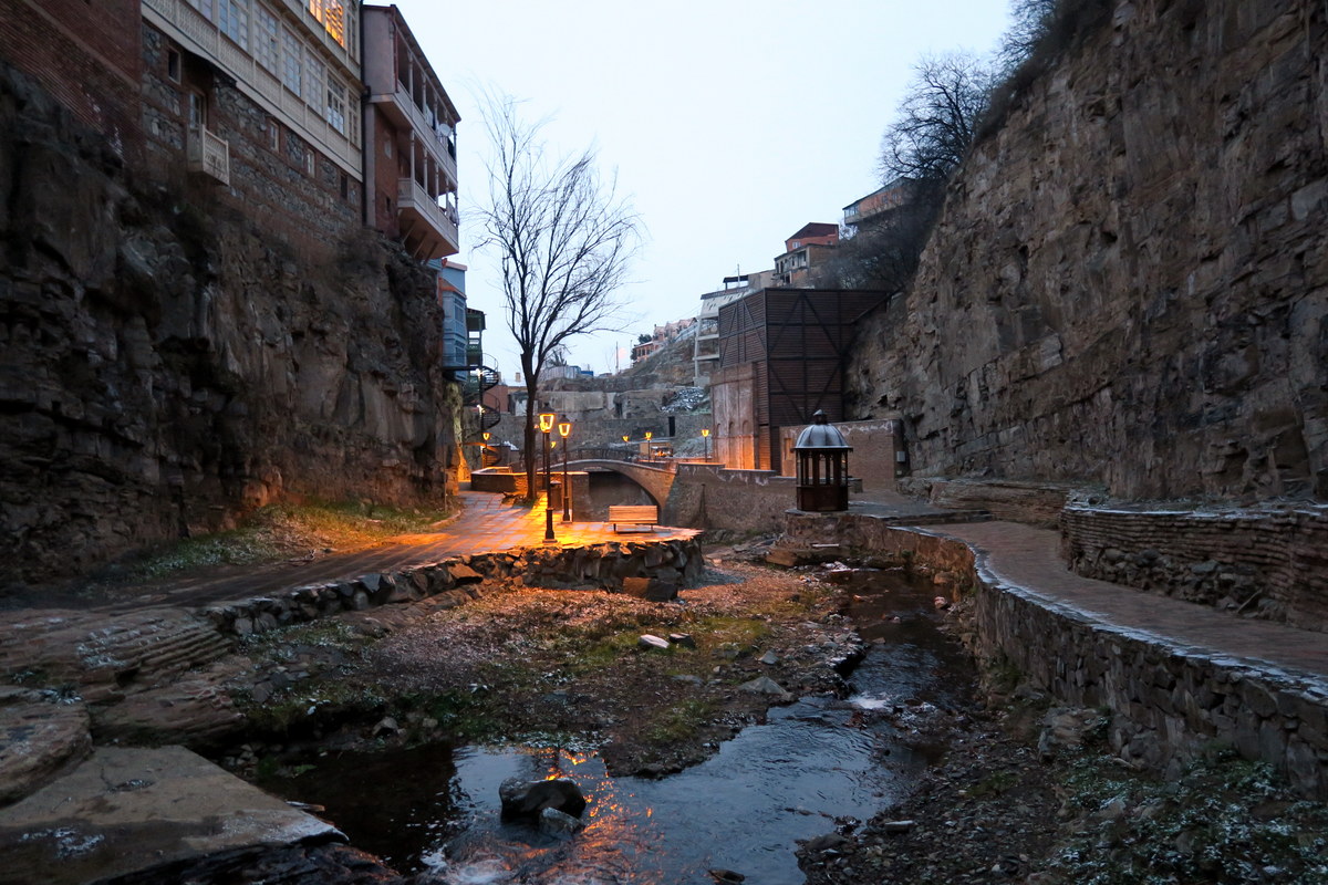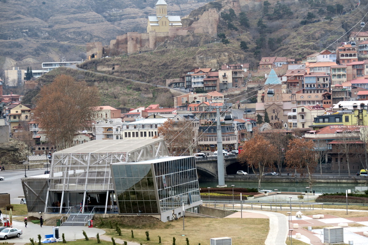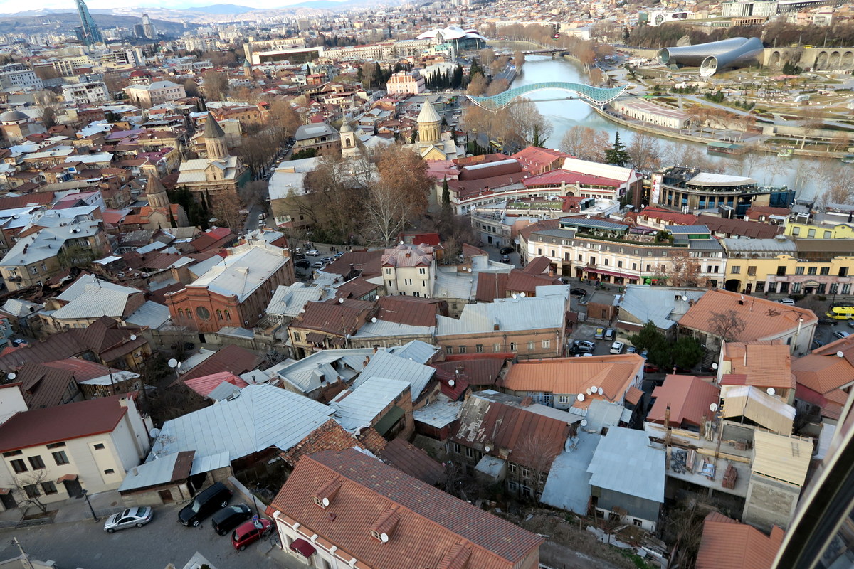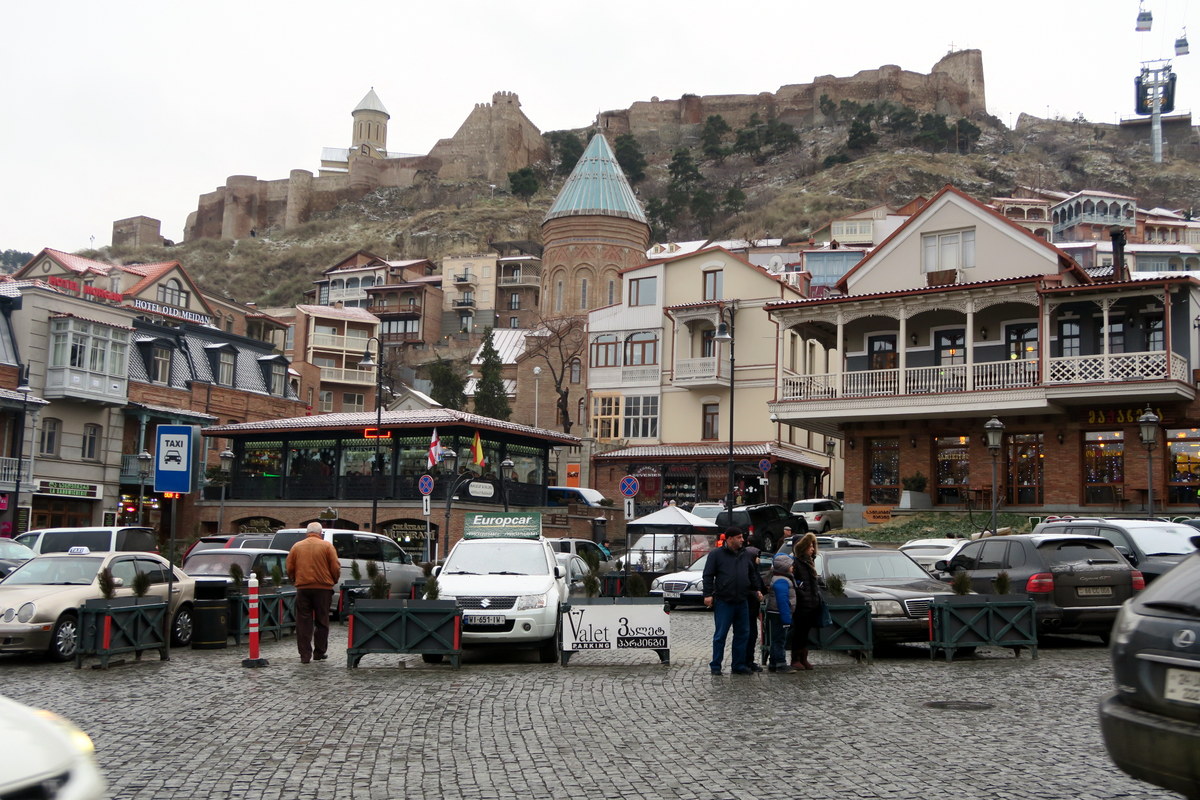 Главная площадь старого города находится прямо на берегу Куры, около моста Метехи. За ней город поднимается вверх по склону, а на самом верху холма стоит старая крепость Нарикала.