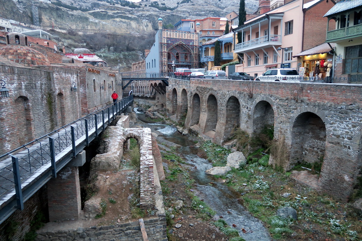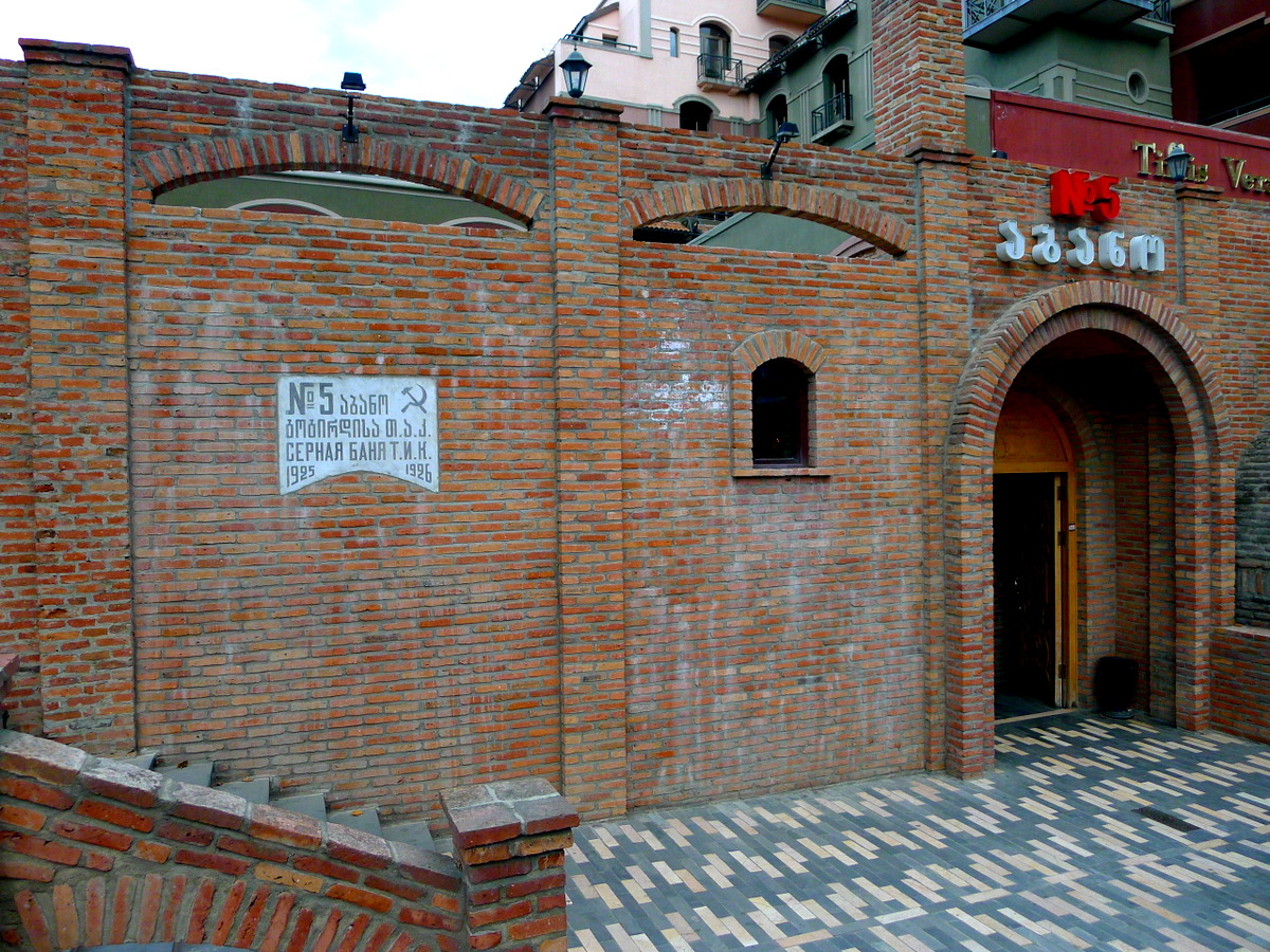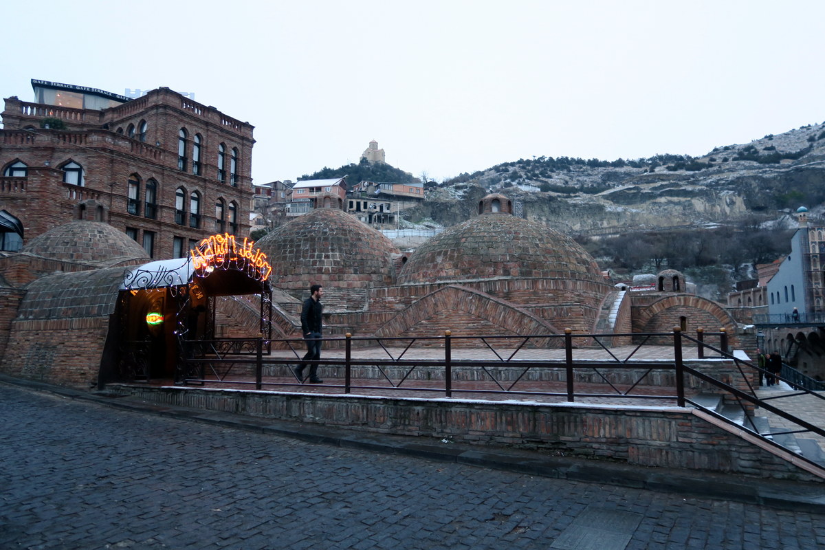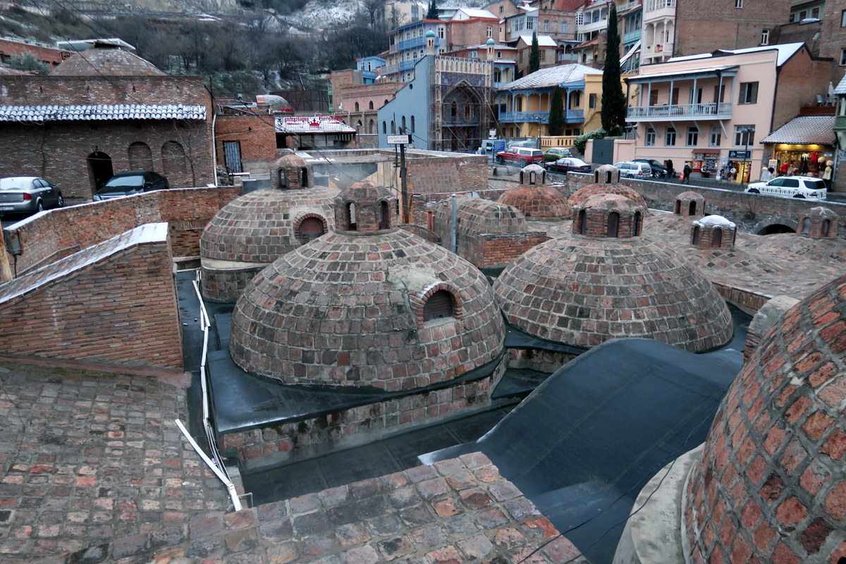 В самом сердце старого города расположены знаменитые серные бани. Ходит легенда, что весь город получил своё название именно от горячих источников, поверх которых эти бани расположены - слово "тбили" по-грузински значит "тёплые". Эти бани отличаются характерными купольными крышами, сложенными из кирпича.