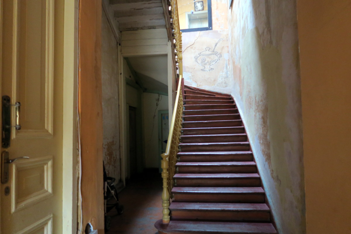 В таких домах порой на вторых этажах в старых квартирах рестораны открывают. Приходишь, как будто кому-то в гости. Раньше тут чья-то гостинная была, а теперь с полдюжины столиков стоят.