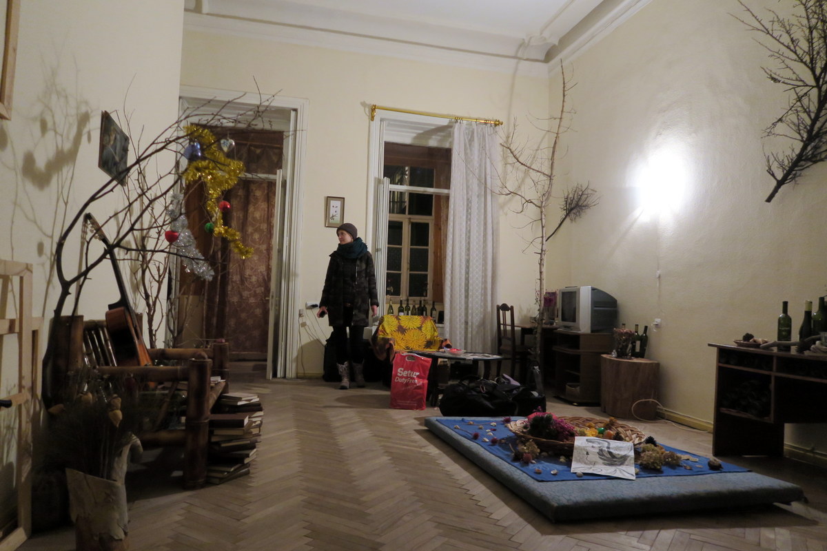 Мы в одной такой квартире остановились - там просто гигансткие залы, хозяева явно не знали как их заполнить, тут никакой мебели не хватит. Набросали книг, натаскали веток и пеньков. Всё равно кажется что дофига свободного места остаётся... А потолки! Метра четыре, не меньше!