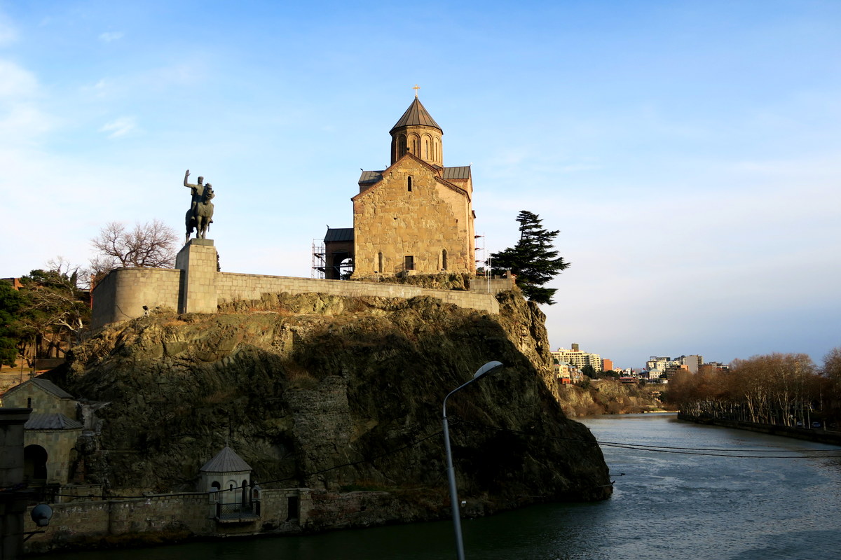 Церковь Метехи и памятник Вахтангу Горгасалу на противоположном берегу Куры - визитная карточка города.