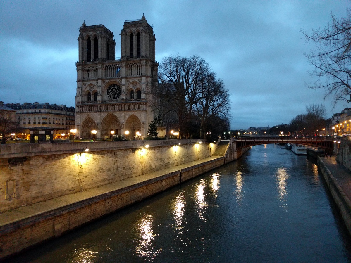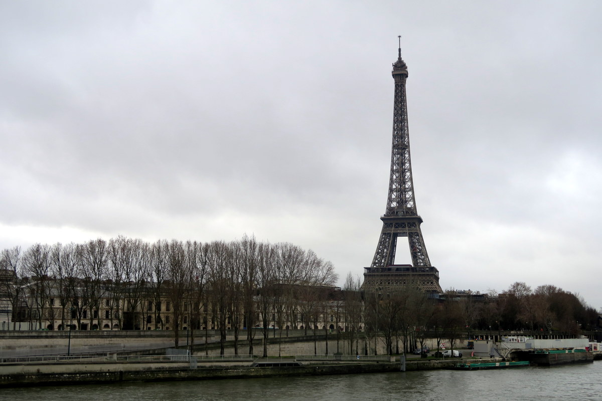 Меньше часа на поезде, и вот я в самом центре Парижа, прямо около собора парижской богоматери. В городе ещё утренние сумерки, небо затянуто облаками, день обещает быть пасмурным. Ну что же, будем гулять по такой погоде, которая есть. Я решил пройтись вдоль Сены в сторону Эйфелевой башни.
