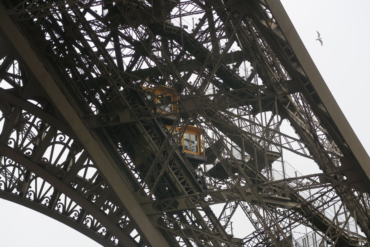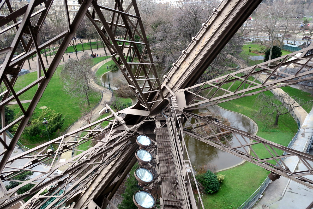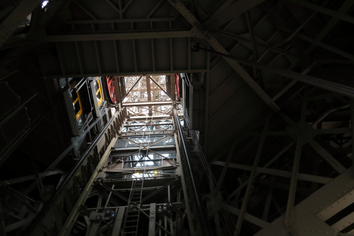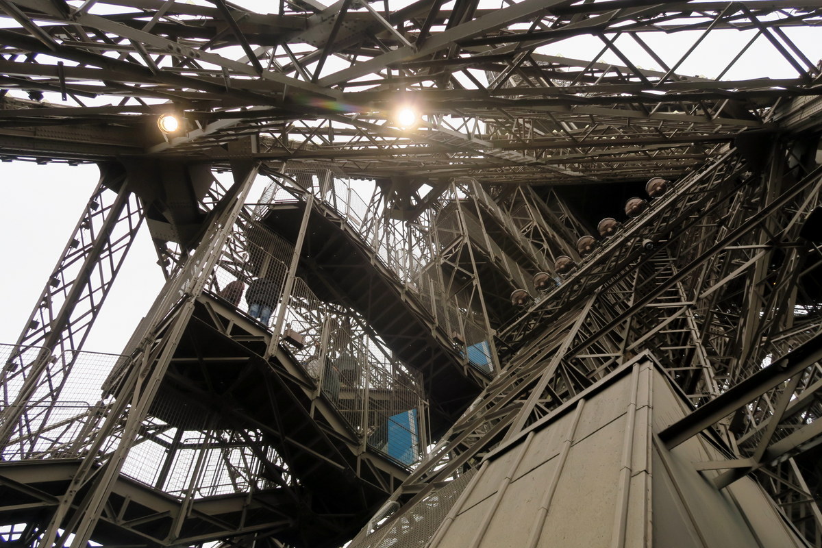 Я рад, что выбрал пеший подъём, так как он позволил мне увидеть башню изнутри неторопясь. Частота и количество разных балок и креплений тут немного удивляет. Эйфель был мастером своего дела. Трудно поверить что все рассчёты для стройки были сделаны вручную.