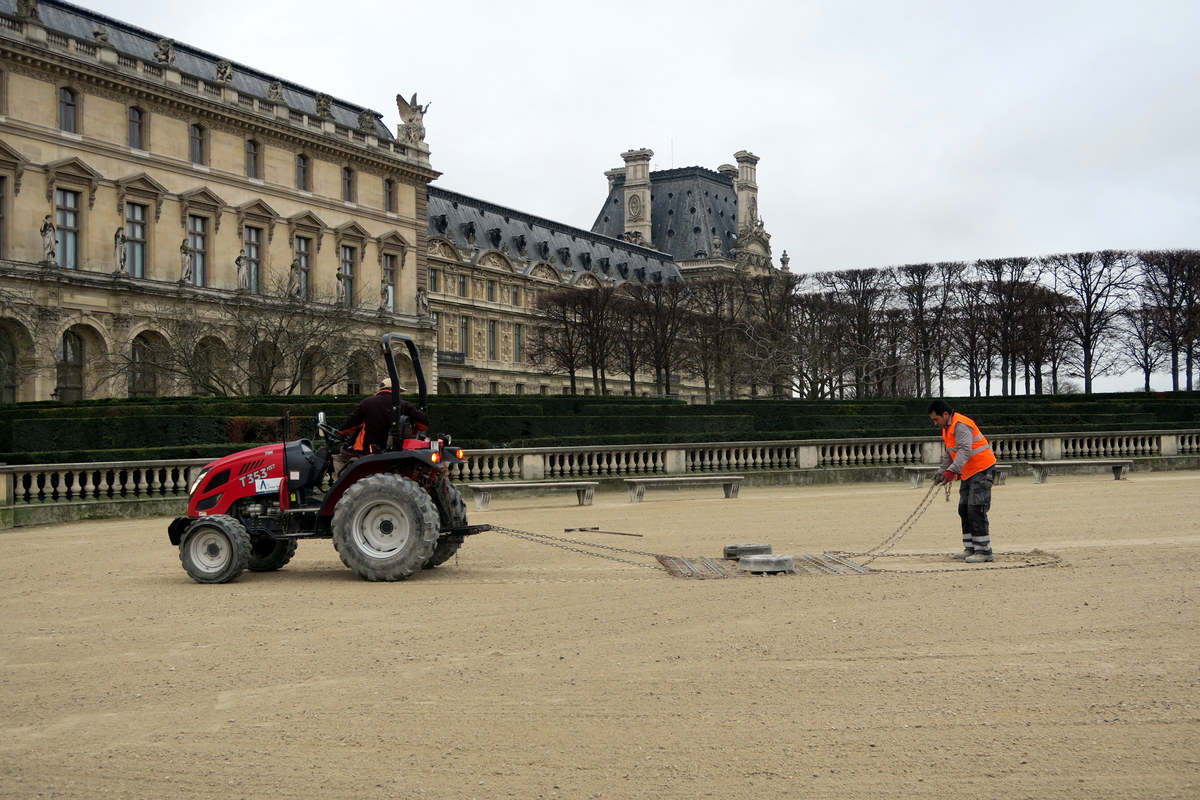 Здесь покрытие из песочка какого-то. Десять утра, а его какие-то мужики на тракторе "расчёсывают". Почти что дзен садик!