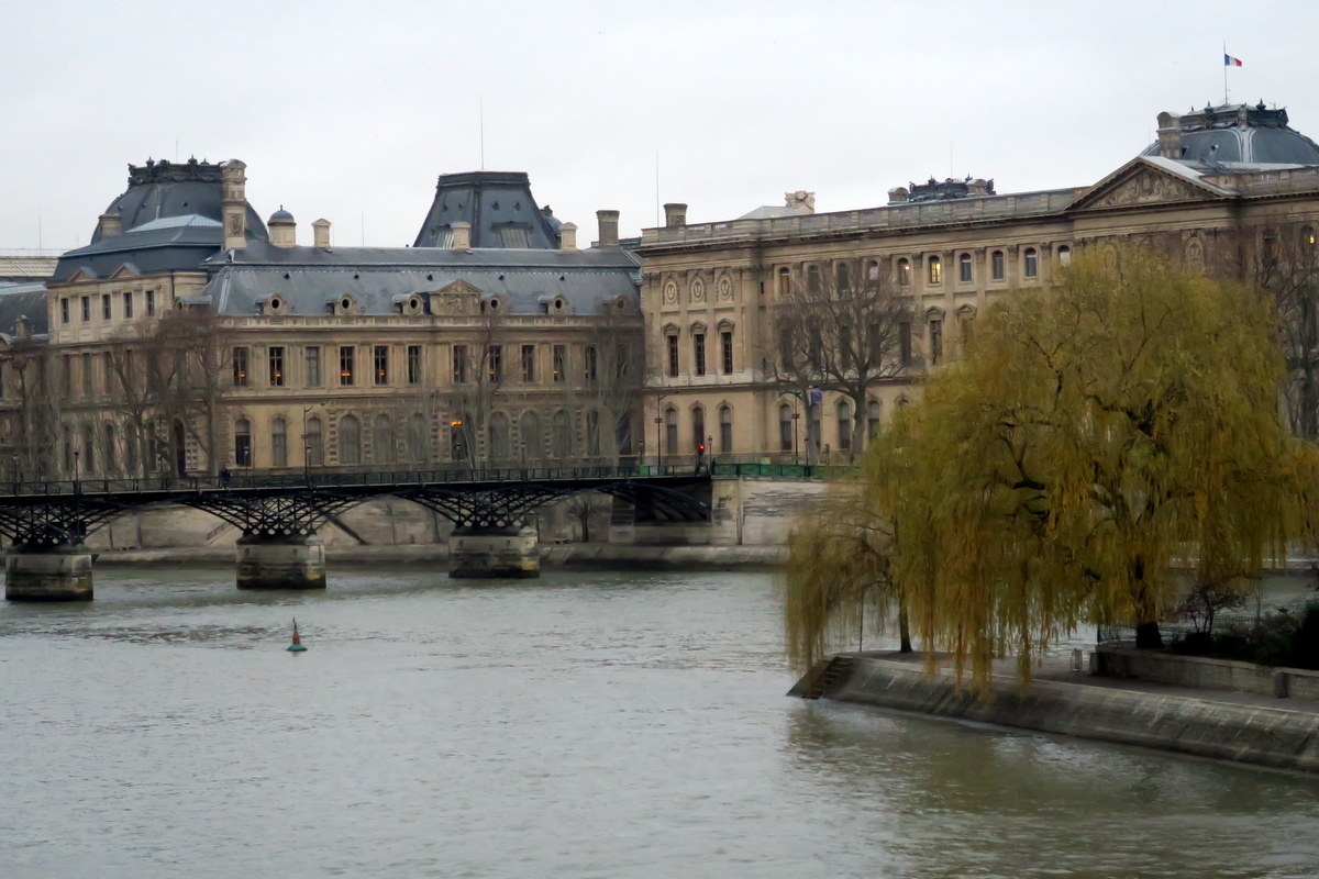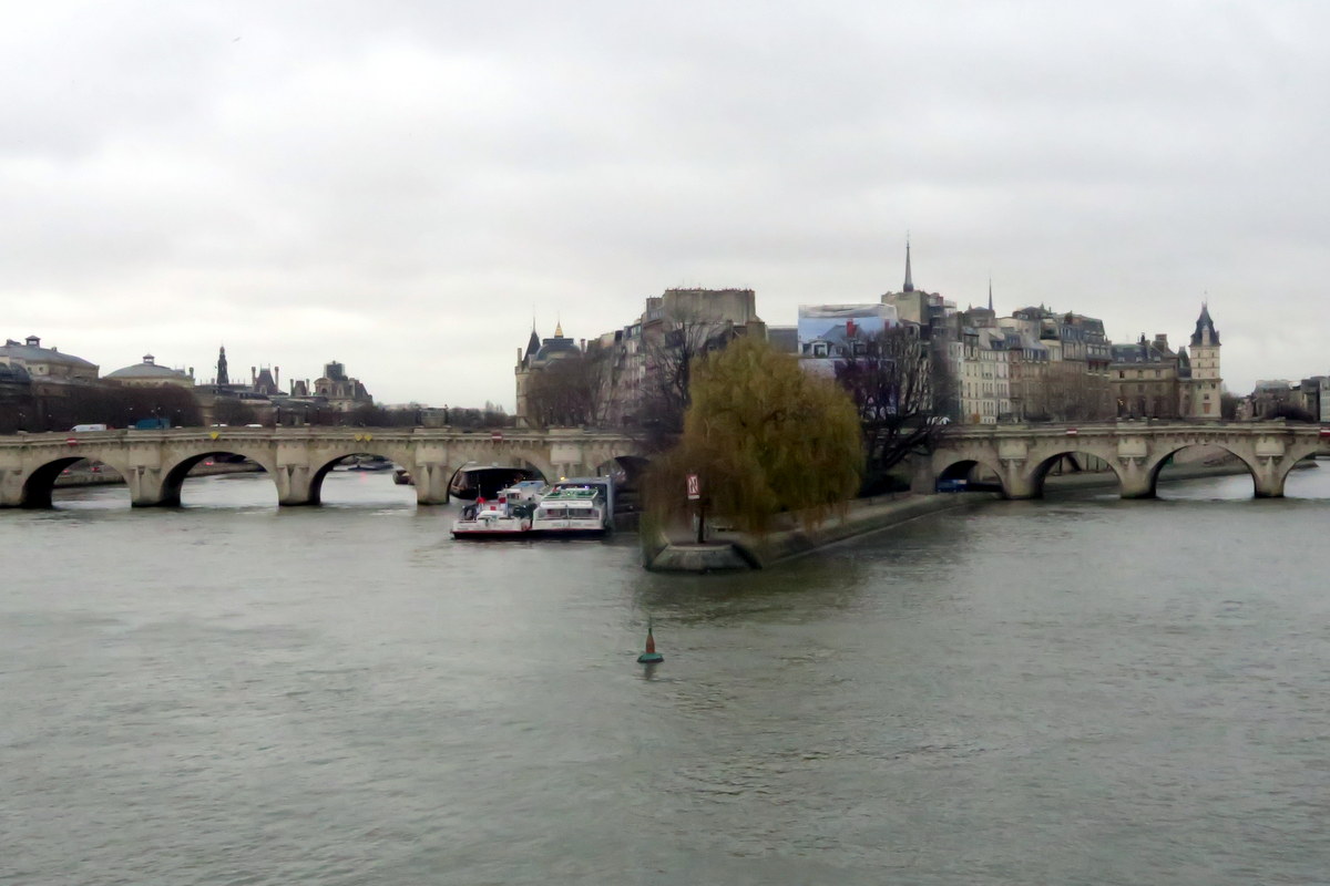 Наконец посветлело. Небо, как и предполагалось всё затянуто, за всю прогулку я так и не увидел даже кусочка голубизны. Прохожу по берегу реки самый кончик острова Сите - старейшей части города. На этом уголке земли растут красивые ивы.