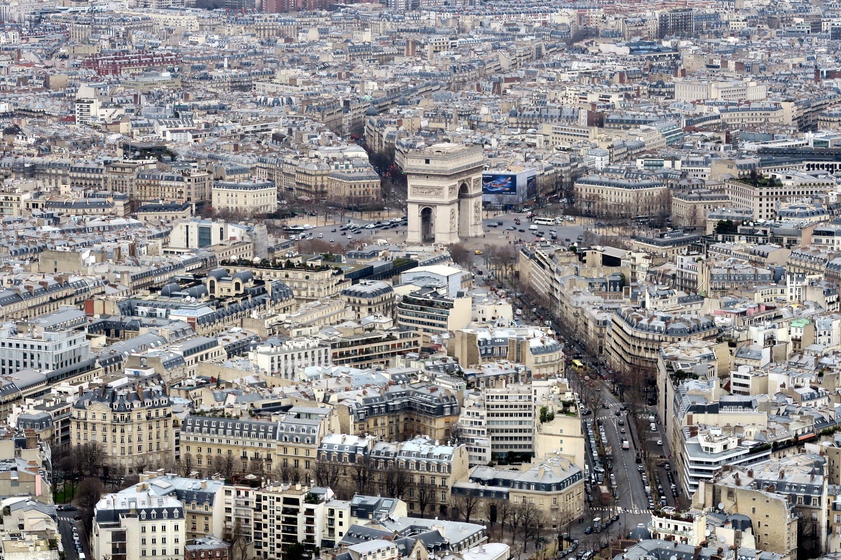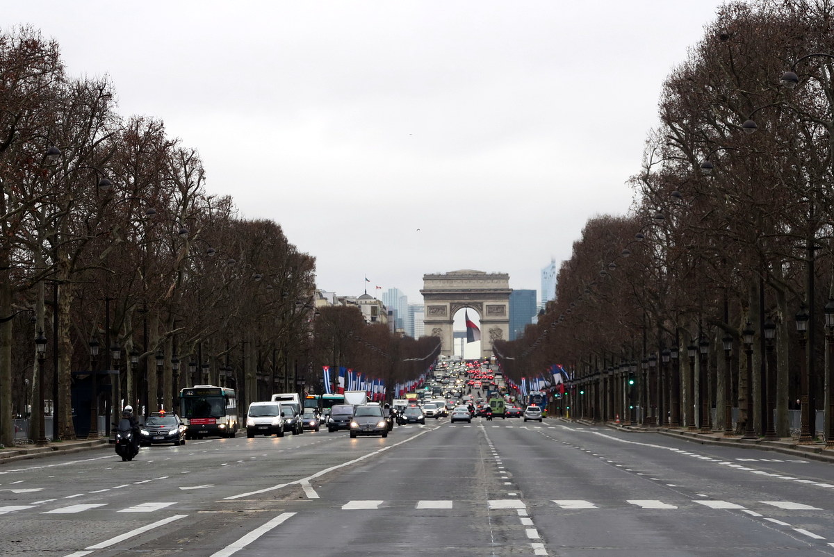 А вот Елисейские поля. Помню, как я удивился, впервые поняв, что это не поля вовсе, а эдакий длиннющий помпезный бульвар. Упирается он в настоящую триумфальную арку. Её размер впечатляет даже отсюда.