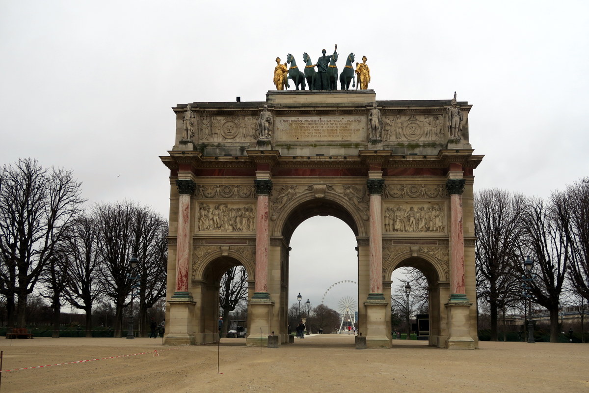 Дальше у нас небольшая Триумфальная Арка на площади Карусель. Не стоит её путать на известной парижской Триумфальной Аркой в конце Елисейских Полей. Хотя сам я спутал. В мой первый визит в Париж, я хотел увидеть несколько вещей, о которых знал. И триумфальная арка была одной из этих достопримечательностей. Мне и в мысли не могло прийти, что в Париже их несколько! Я тогда сфотографировался на фоне неё, и уехал домой, считая что галочка поставленна. Лишь увидев потом в интернете фотографии настоящей триумфальной арки, я осознал свою ошибку.