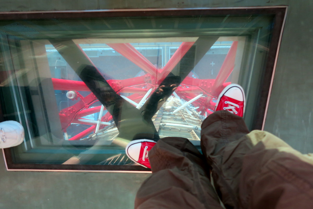 Смотровая секция башни трёхэтажная. На нижнем этаже есть стеклянный пол, можно посмотреть на всю конструкцию сверху.