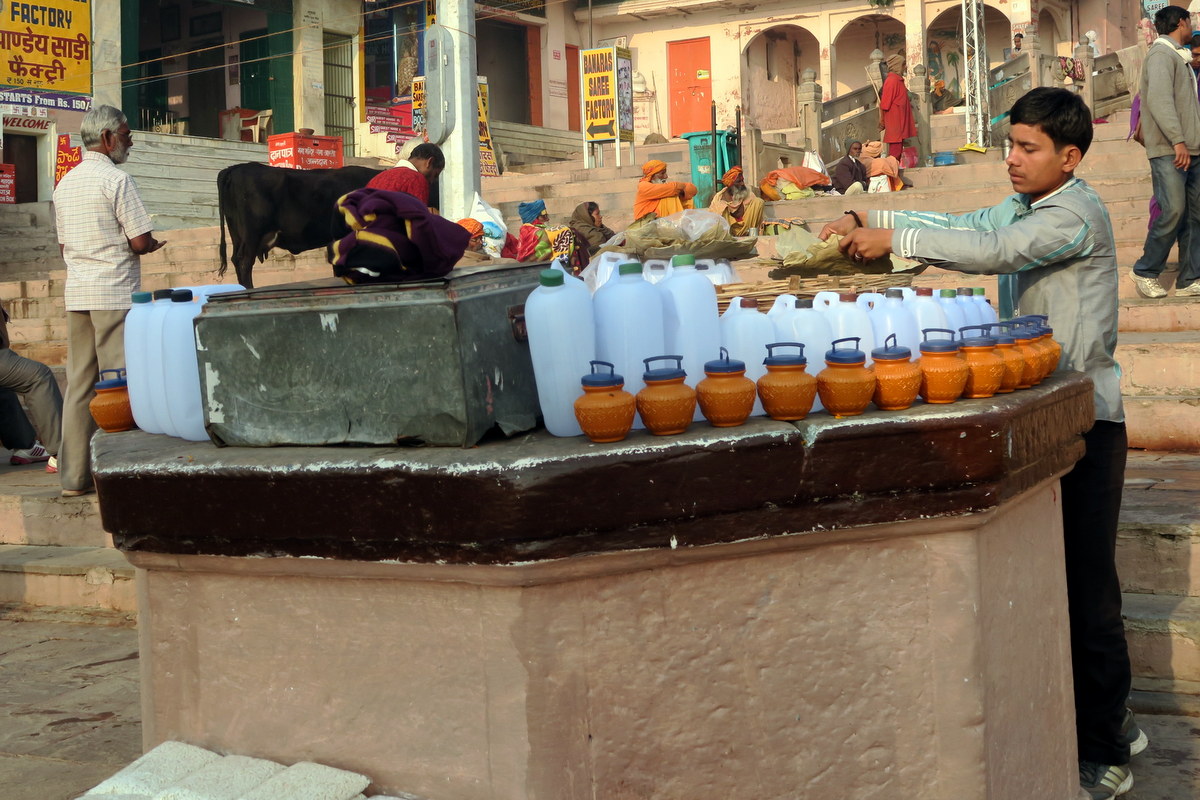 Священную воду из Ганга продают в бутылках и горшочках - паломники могут увезти с собой немного чудотворной водычтоб дома отравить всех соседей.