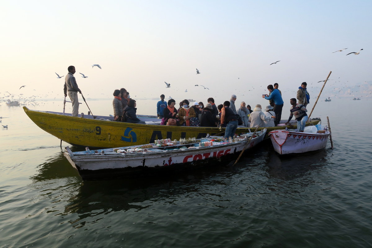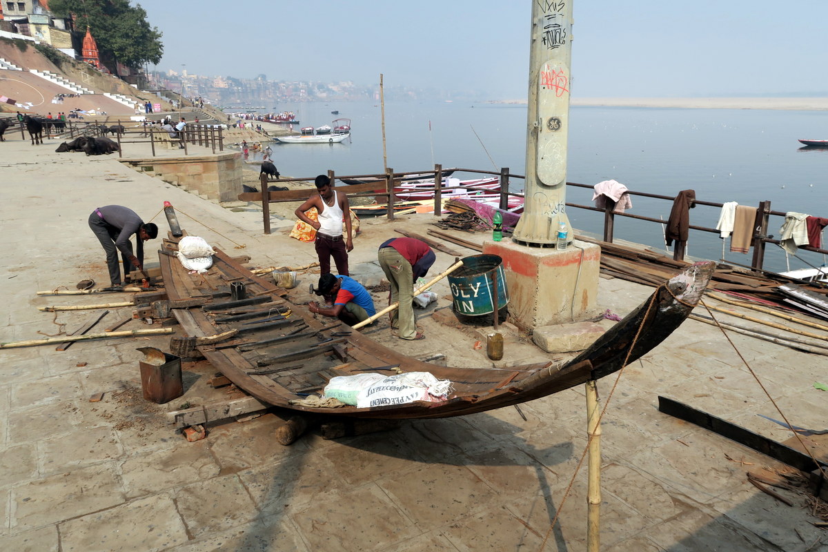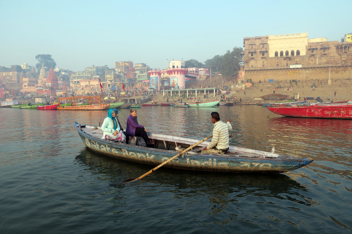 Лучший способ посмотреть на гхаты варанаси, это прокатиться вдоль них на лодочке в районе часов восьми-девяти утра, когда солнце ещё красиво освещает береговую линию старых дворцов. Выйтиде на набережную, и капитаны многочисленных лодочек обступять вас, предлагая свои услуги. Как правило просят 200 рупий за час катания (это чуть меньше $3). Лодки у них в основном не моторные, гребут руками.