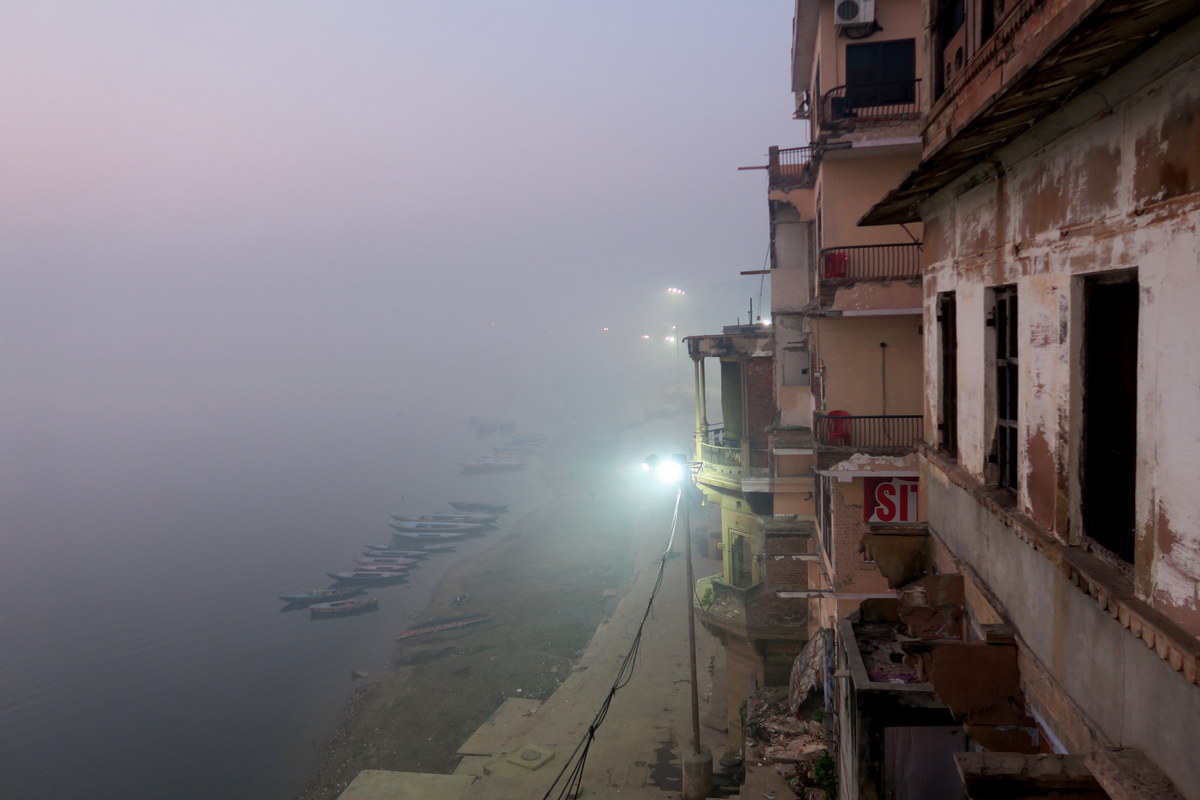 Зимой здесь туманы совмещаются со смогом, и часто дальнего берега Ганга совсем не видно. Кажется, что твой балкон - часть какой-то стены на самом краю света, а дальше всё растворяется в белой бездне.