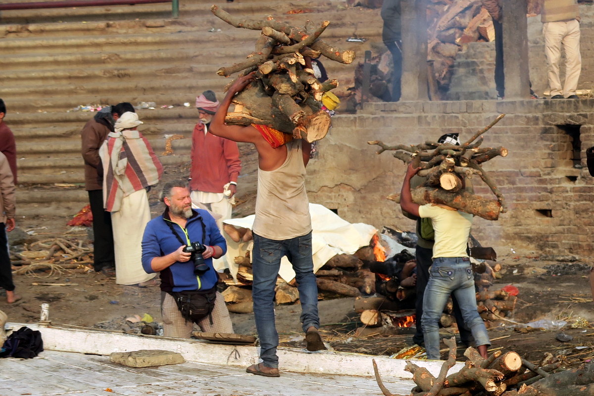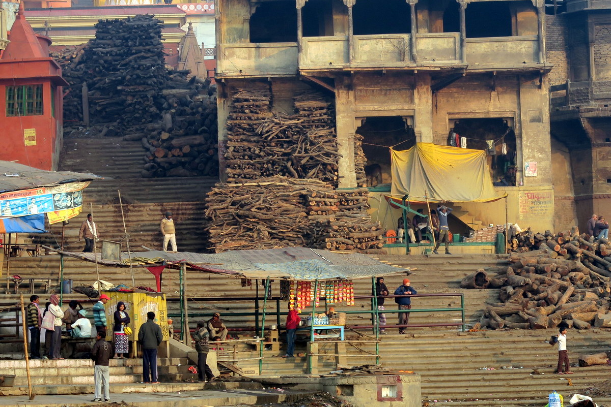 В Варанаси есть ещё один гхат, где кремируют мёртвых, называется он Харишчандра. Здесь с фотосъёмнок всё попроще. Мне без проблем разрешили снимать подготавливаемый костёр.