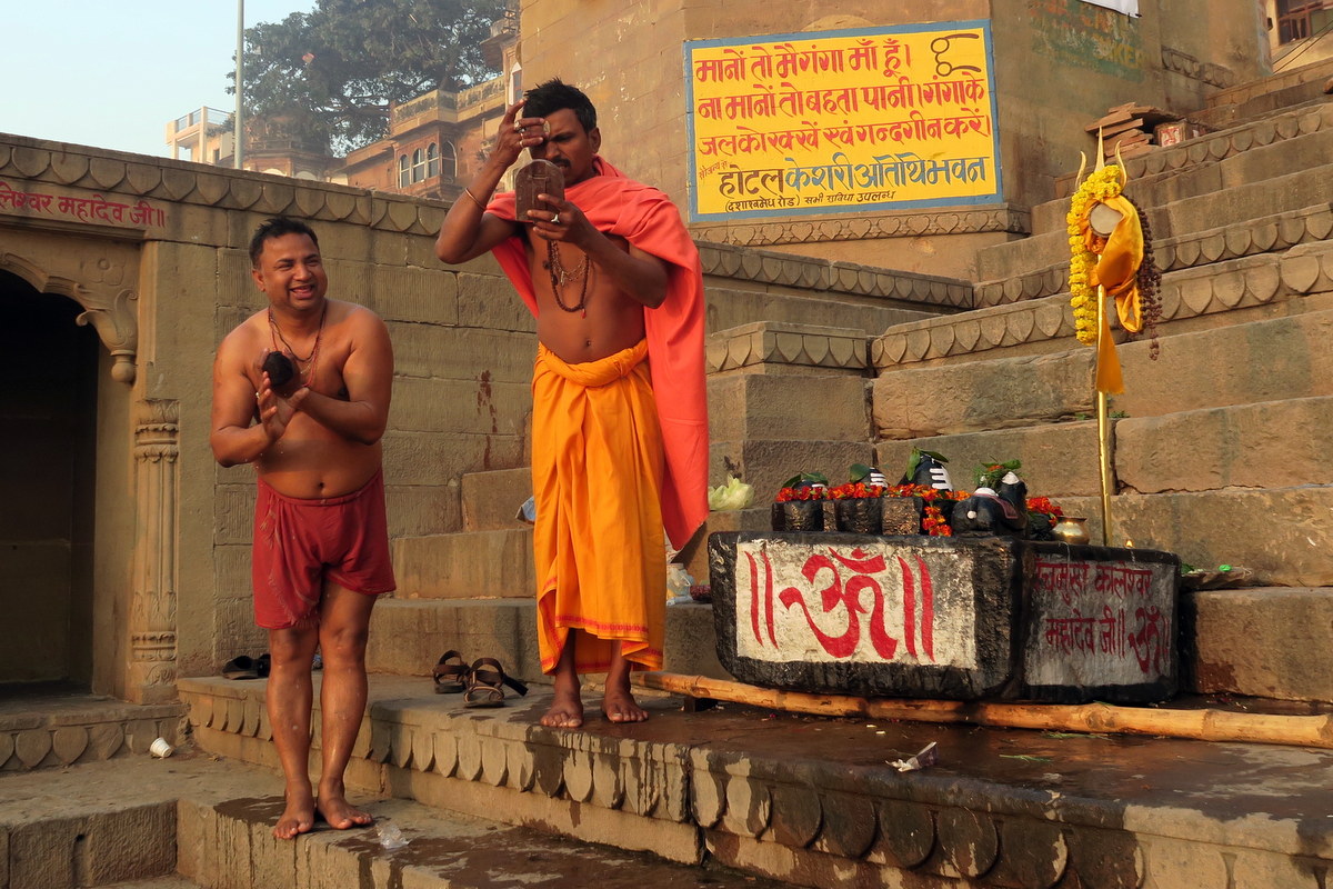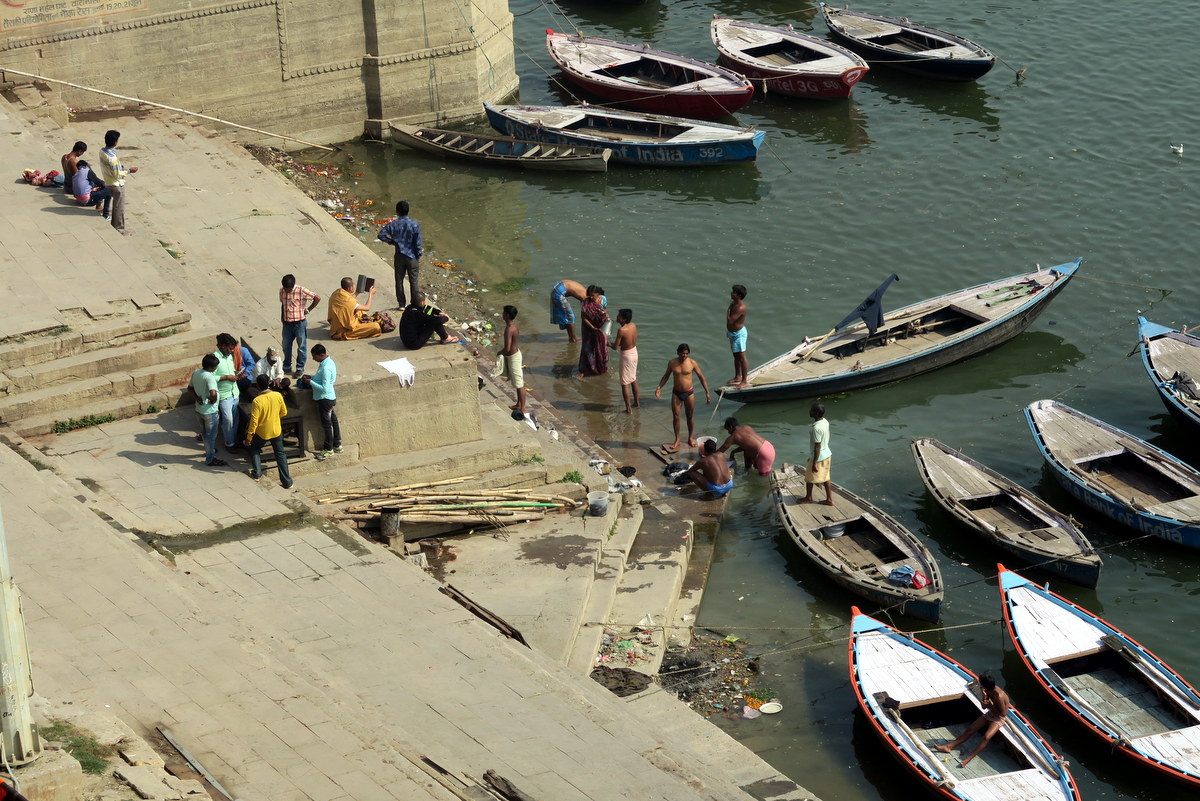 На этих ступенях весь день кипит жизнь. Гхаты в Варанаси как отдельный город внутри города, наподобие Ватикана внутри Рима. По ним можно шататься весь день, абсолютно забыв, что рядом находится ещё целый город с миллионным населением. Многие туристы сюда за этим и приезжают.