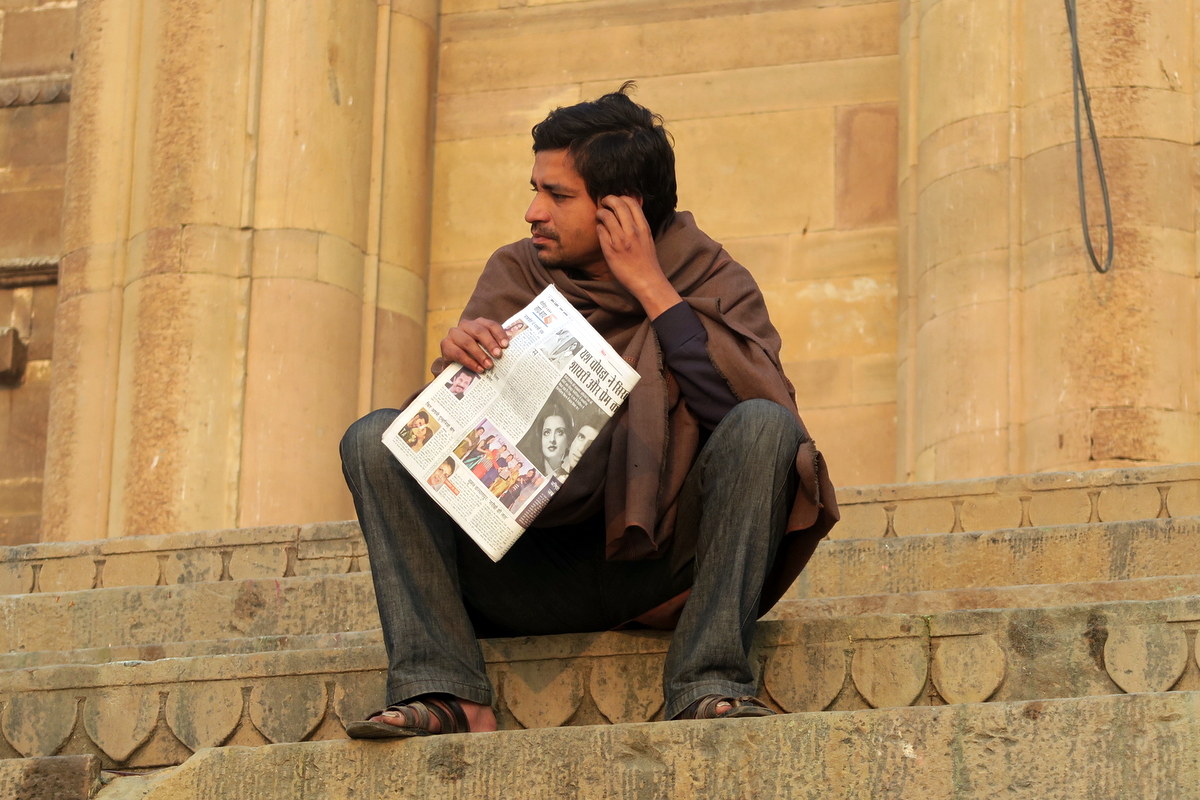 А этот джентельмен вышел на гхат просто почитать газетку на свежем воздухе.