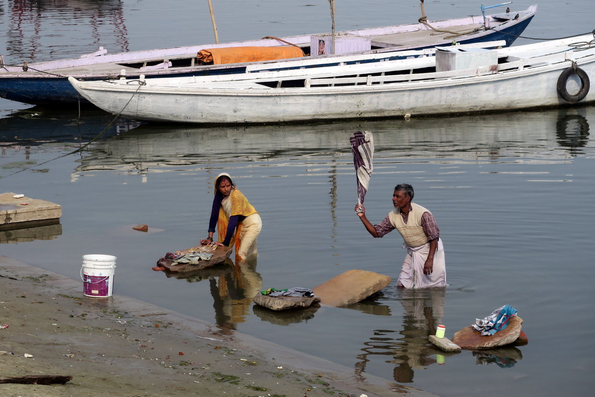 В Ганге же и стирают одежду, развешивая и раскладывая её потом сушиться прямо на гхатах. (Помните загадку о сушащихся трусах?)