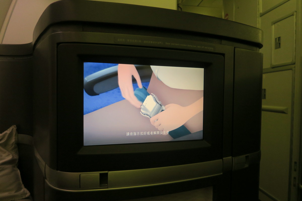 Перед взлётом показывают фильм про Пристегните Ремни. Мне кажется пора прекратить тратить на это время пассажиров. Как присрёгивать ремни я и так знаю, а где выходы мне всё равно непонятно. Уверен, в случае эвакуации я, как и все, обязательно запаникую. Зато экран у нас большой, похоже дюймов на 20.