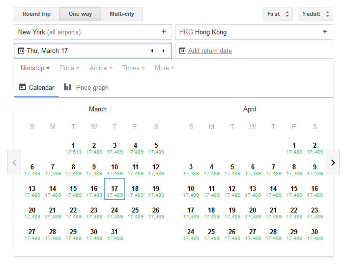 Семнадцать тысяч! В один конец. Можете сами проверить, если вам не верится. Причём цена всегда одинаковая, на какой день не смотреть!