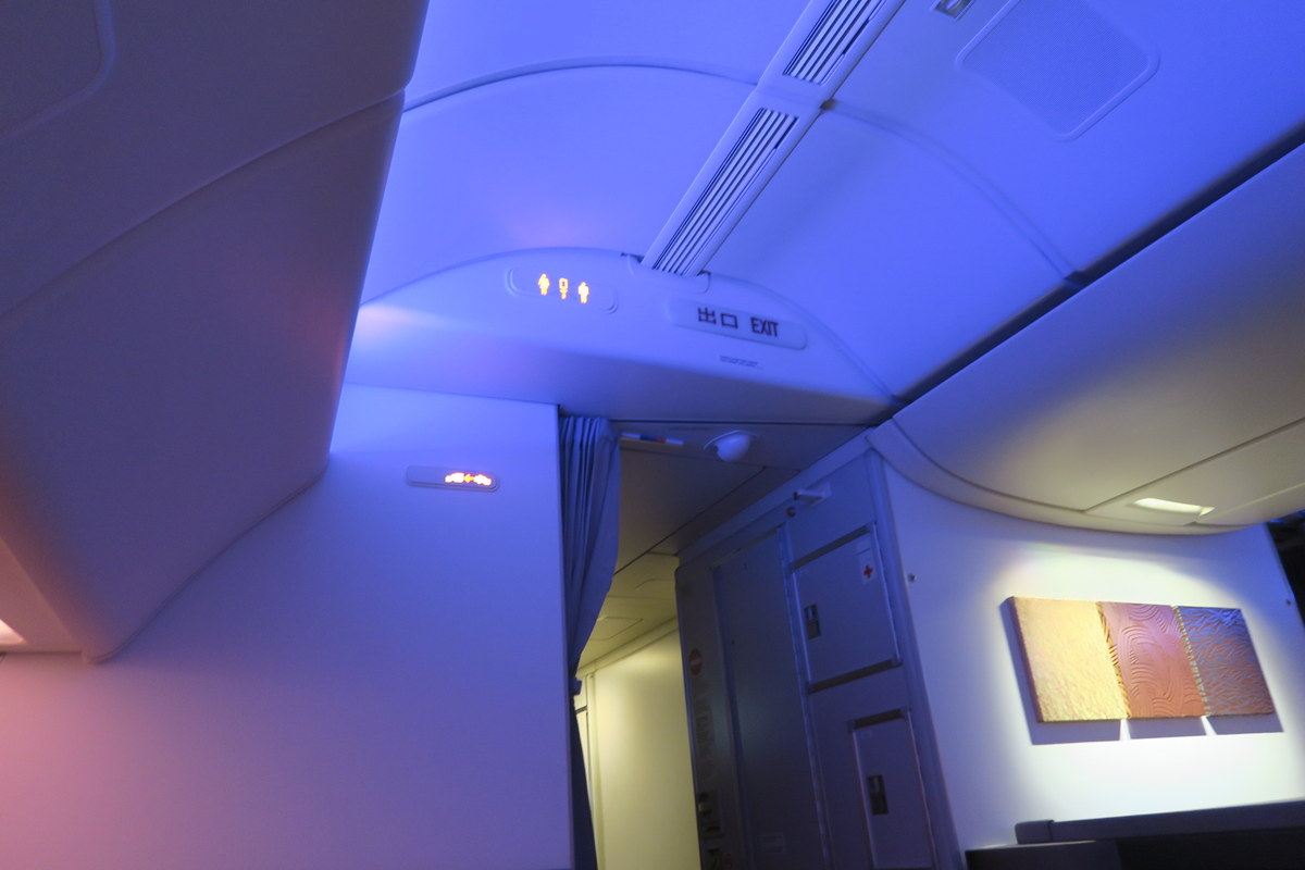 После ужина выключили свет. У каждого пассажира есть три отдельные лампочки, и несколько разных подсветок (когда свет загорается под пуфиком, например.)