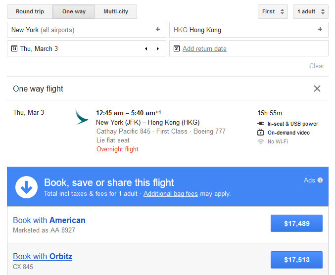 Дело в том, что мне выпал шанс взять билет в первом классе Cathay Pacific за 67500 миль и пять долларов. А знаете, сколько он бы стоил, если его за деньги покупать?