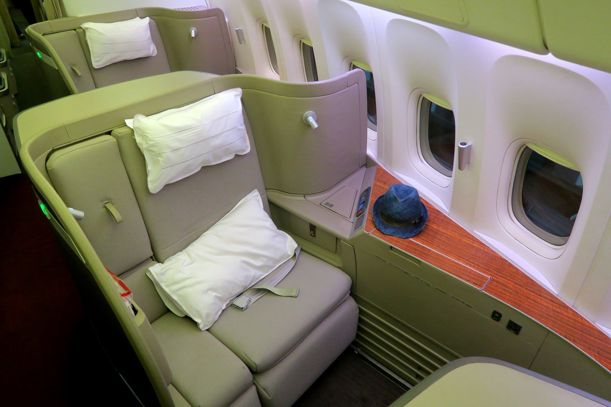 Зато здесь выше потолки, так как над головой нету отсеков для чемоданов. Считается, что пассажир, который может позволить себе билет за такие деньги просто не будет брать с собой в салон ничего крупнее небольшого портфельчика.