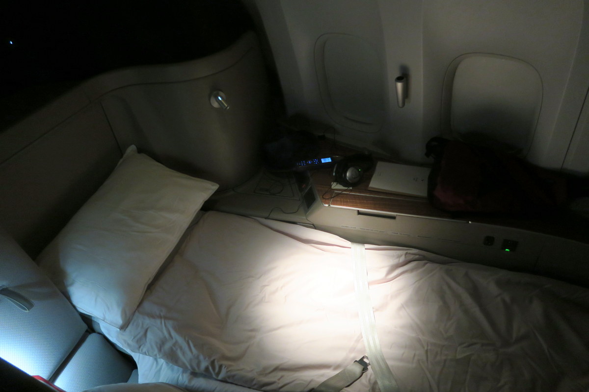 Ну всё, теперь точно спать. К счастью, когда летишь в бизнес или первом классе, где кровати есть, все мои обычные хитрости для засыпания не нужны. Лёг, укрылся, и сладко заснул часов на восемь.