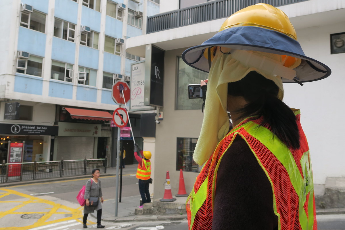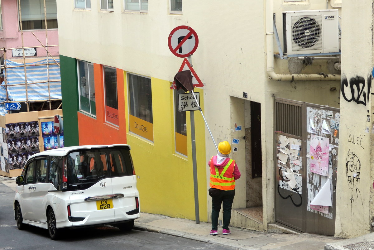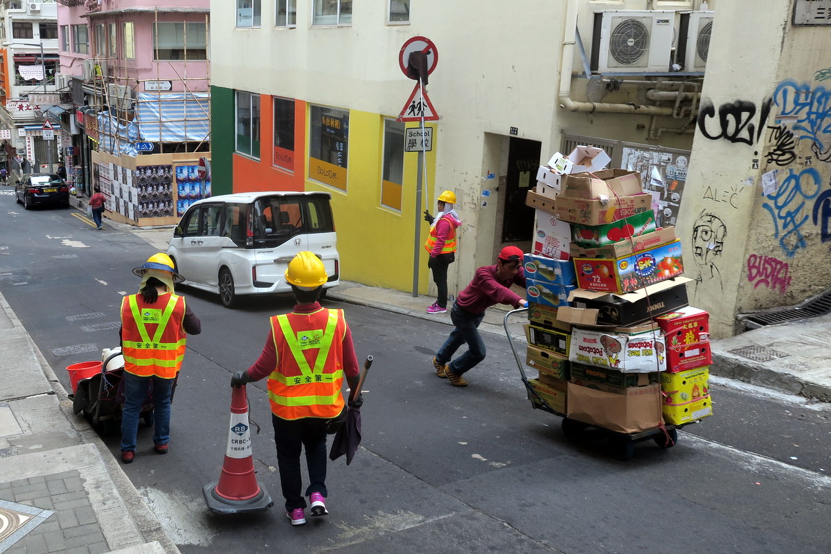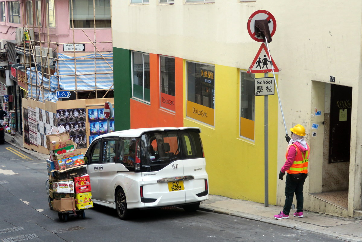 Наблюдал сегодня замечательный эпизод из жизни Гонконга. Спешу поделиться рассказом о том, как власти держат этот шумный и людный город в чистоте. Конечно же занимаются этим работники коммунальных служб. Вот одна из них.
