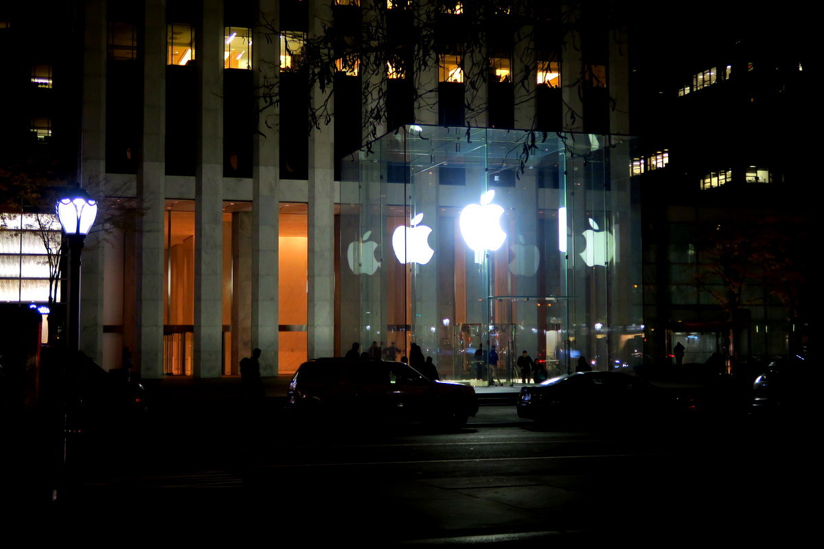 Начинаем вечером, около Apple Store на пятой авеню. Отсюда мы начнём двигаться на восток по 59й стрит.