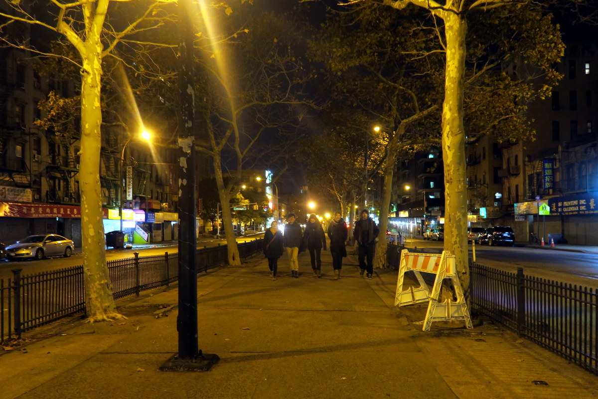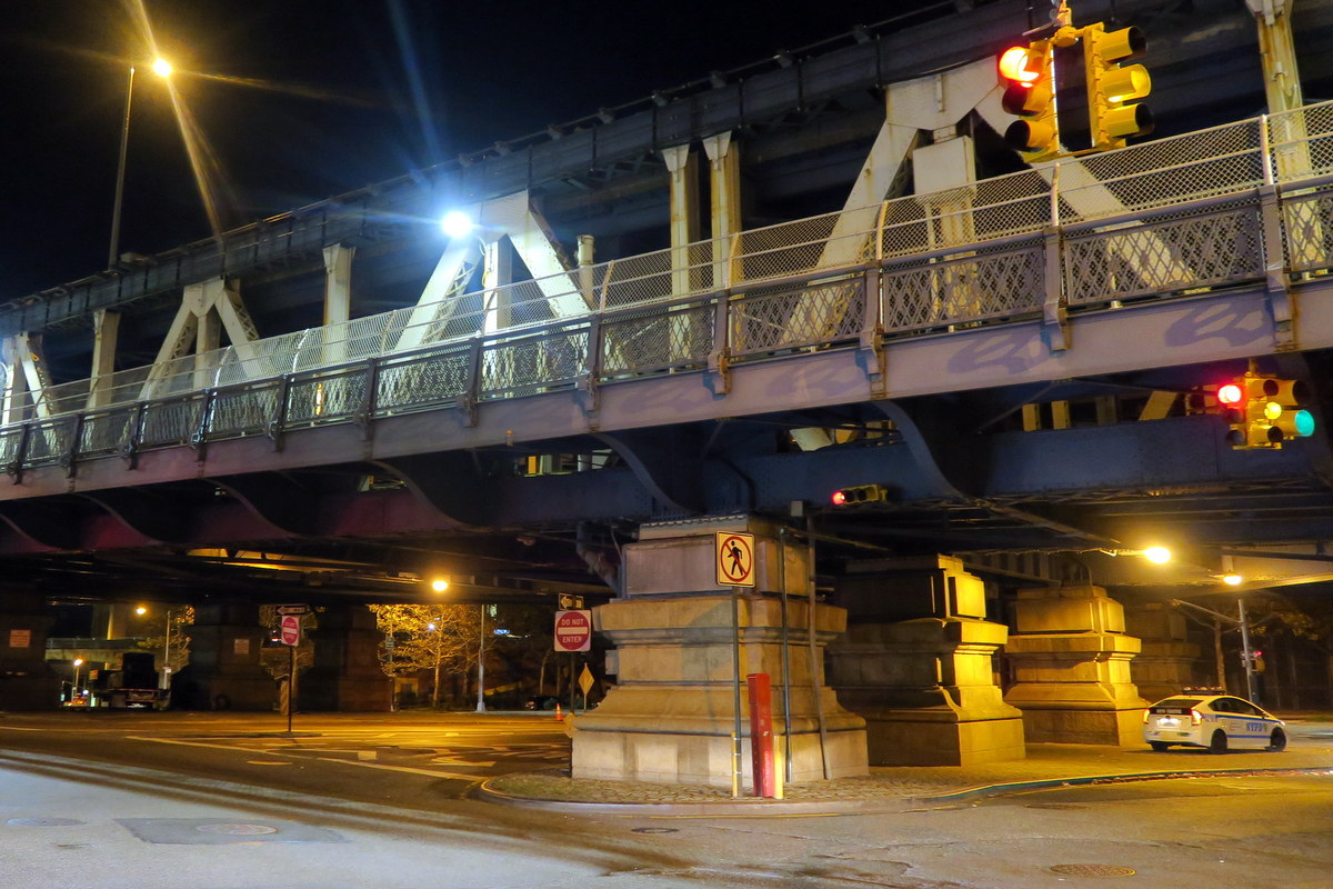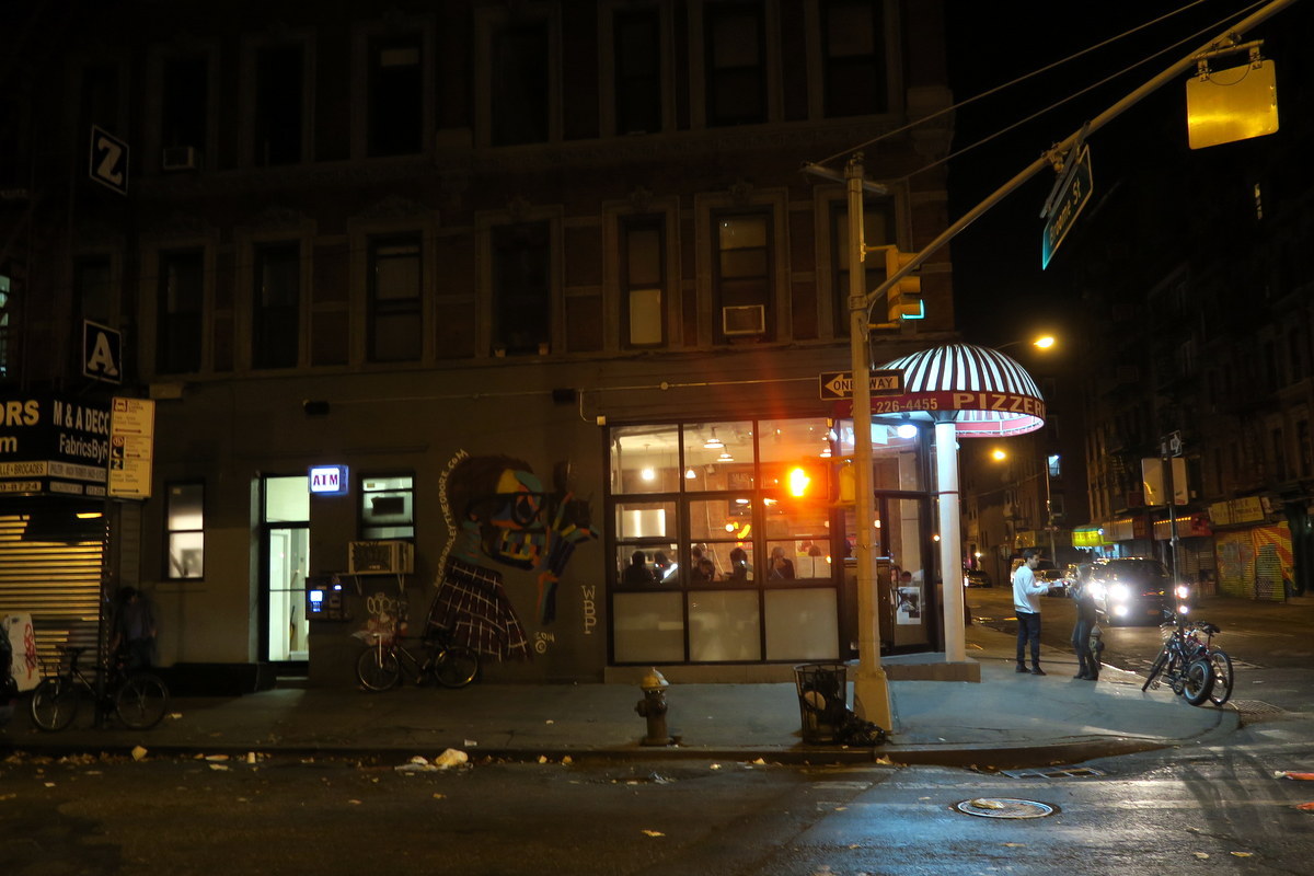 Сходим с моста и оказываемся в довольно противной части Манхэттена - Lower East Side. Здесь шумно и грязно, тусуется пьяная молодёжь. Скорее всего даже глубокой ночью на LES до сих пор людно. Одно преимущество, здесь можно перехватить недорогую пиццу. Но вообще, пошли отсюда поскореей!