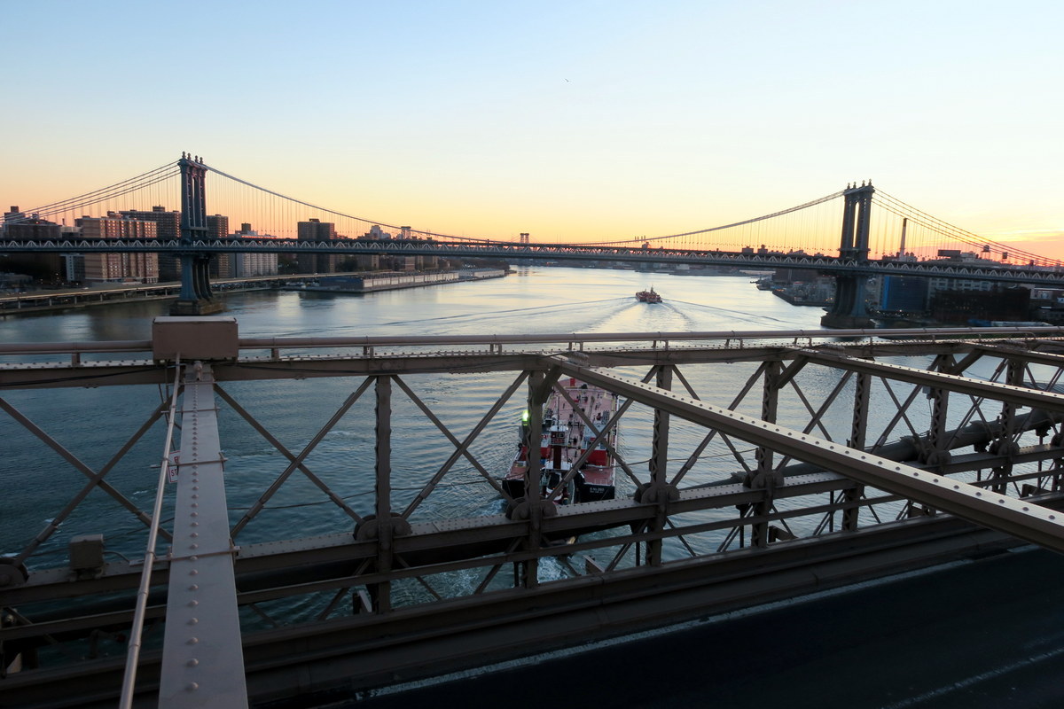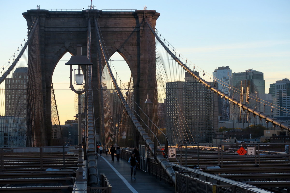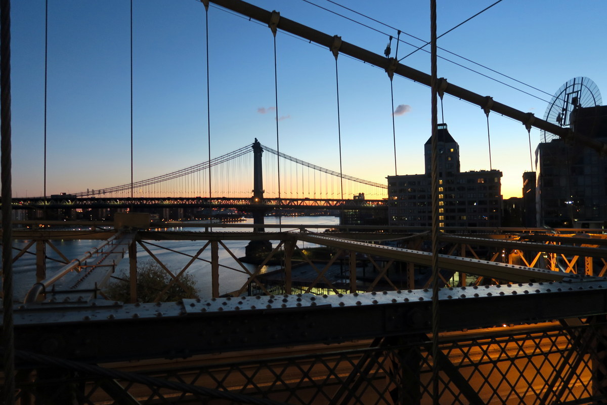 Этот маршрут задуман как ночной, таким образом можно быть уверенными, что на мостах не будет людно. Если повезёт они будут полностью в вашем распоряжении! Я опробовал эту прогулку в ноябре, когда ночь уже была довольно длинной. Это даёт возможность гулять помедленней, и всё равно успеть встретирь рассвет в самом лучшем месте в Нью Йорке.