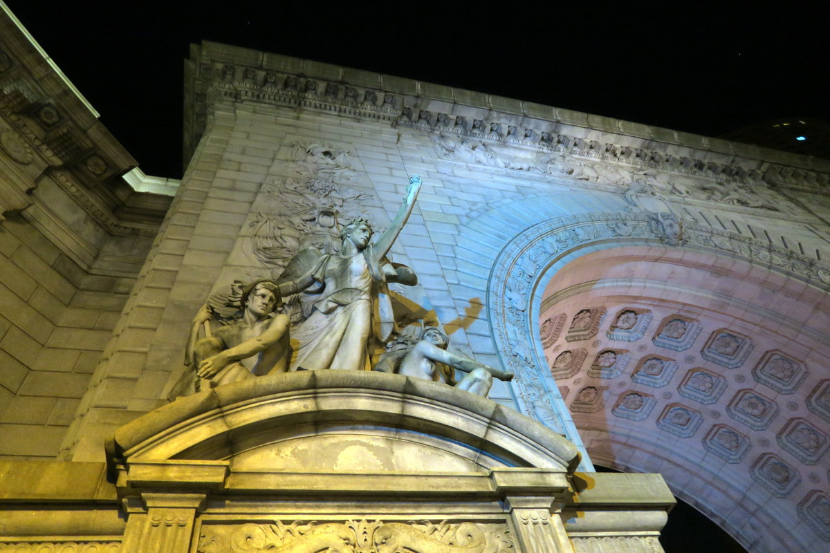 В Манхэттене задерживаться не будем - у нас же прогулка по мостам. Наш четвёртый по счёту - Манхэттенский мост, построен 1909, в эпоху расцвета неоклассицизма и жизни на широкую ногу. Сам мост сделан полностью из железа, но перед въездами построенны каменные украшения. Оцените грандиозную арку, ведущую на него с Canal street!