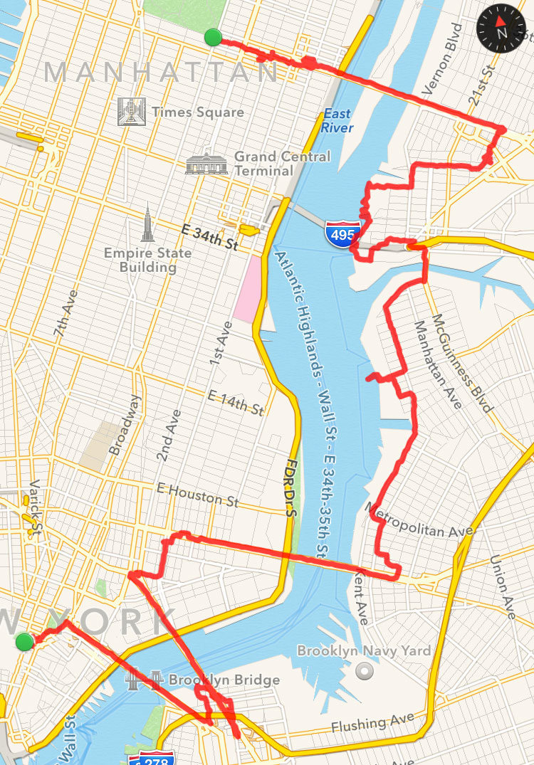 Ведь мосты, особенно мосты через Ист-ривер - это то, без чего Нью Йорк не был бы тем городом, который существует сегодня. Именно с построением Бруклинского моста в конце XIX века появилась возможность объединить его в одно целое. Во время нашей прогулки мы пересечём Ист-ривер не один и не два, а целых четыре раза, и прошагаем маршрут длинной километров в 30! Я называю её Прогулкой о Пяти Мостах.