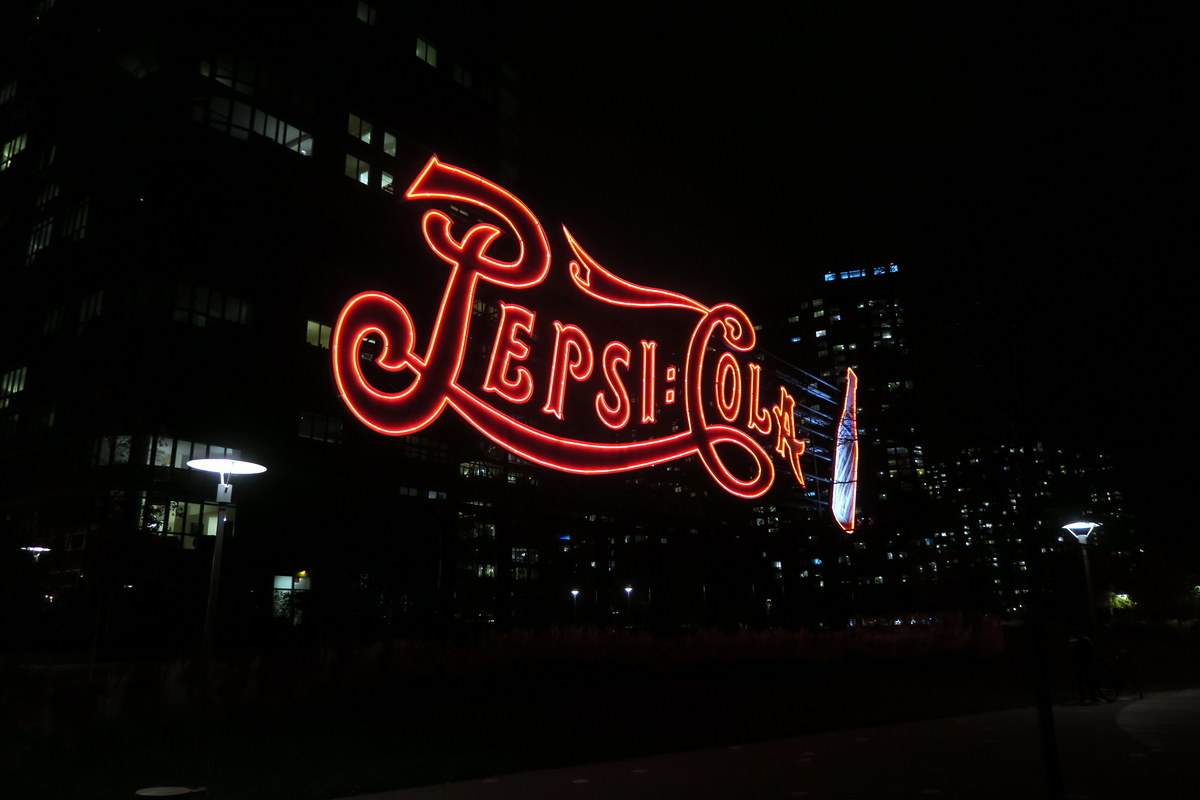 Это известная старая неоновая реклама Пепси Колы! Она давно стала местной достопримечательнстью, и визитной карточкой этого района. Многие привыкли её видеть через реку, с восточного берега Манхэттена, но нам повезло поглазеть на неё вблизи.