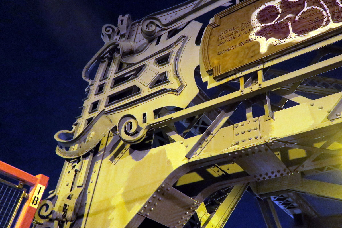 Мост сделан из комнинации камня и железа. Многие из его декоративных деталей сделаны из клёпанных металлических балок - в то время они считались строй-материалом будущего.