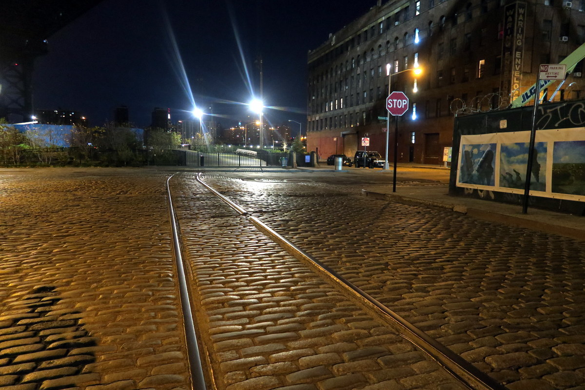 Тут красиво - сохранилась старая брусчатка, и рельсы. Рельсы кстати не трамвайные - здесь был грузовой порт, и товары развозили на узкоколейной железной дороге. (Такой же, что ходила раньше по Хайлайну.)